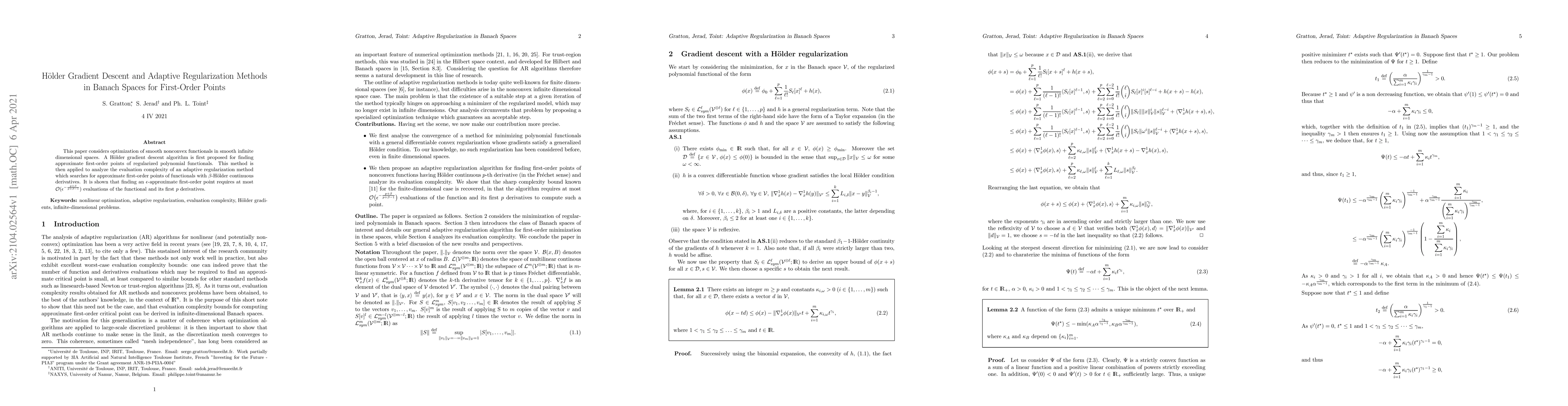 This paper introduces a H"older gradient descent algorithm for optimizing nonconvex functionals in infinite-dimensional spaces, requiring at most O(ε^(-(p+β)/(p+β-1))) evaluations to find an ε-approximate first-order point. An adaptive regularization method is also analyzed, demonstrating its efficiency in handling functionals with β-H"older continuous derivatives.