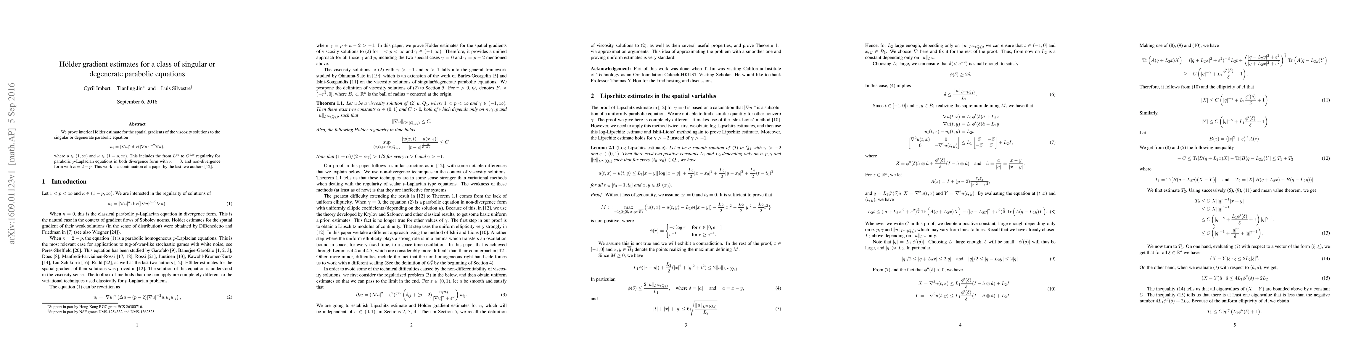 This paper proves interior H\"older estimates for the spatial gradients of viscosity solutions to singular or degenerate parabolic equations, including the transition from $L^\infty$ to $C^{1,\alpha}$ regularity for parabolic $p$-Laplacian equations. The results extend previous work by the authors.