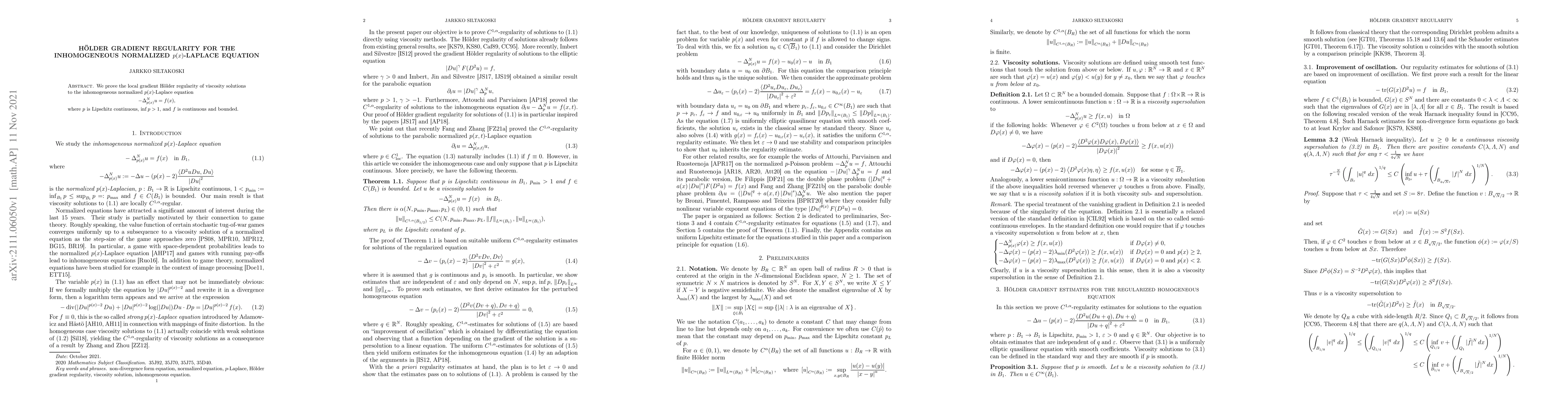We prove the local gradient H\"older regularity of viscosity solutions to the inhomogeneous normalized $p(x)$-Laplace equation $$ -\Delta u-(p(x)-2)\frac{\left\langle D^{2}uDu,Du\right\rangle }{\left|Du\right|^{2}} = f(x), $$ where $p$ is Lipschitz continuous, $\inf p>1$, and $f$ is continuous and bounded.