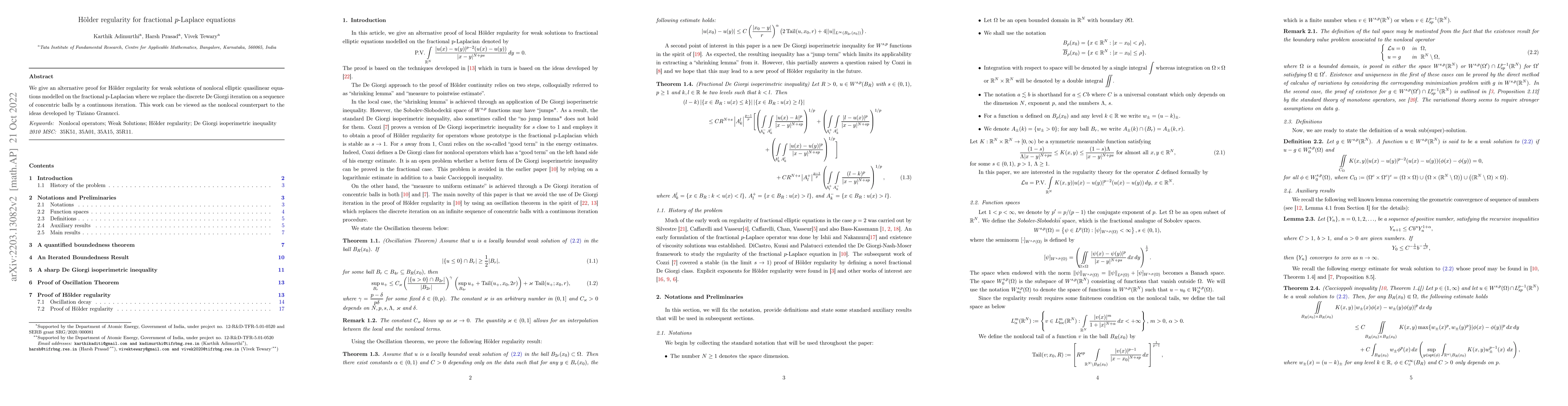 Summary: This paper provides an alternative proof for H\"older regularity of weak solutions to nonlocal elliptic quasilinear equations based on the fractional $p$-Laplacian, using a continuous iteration instead of the traditional discrete De Giorgi method. It serves as a nonlocal extension of Tiziano Granucci's ideas.
