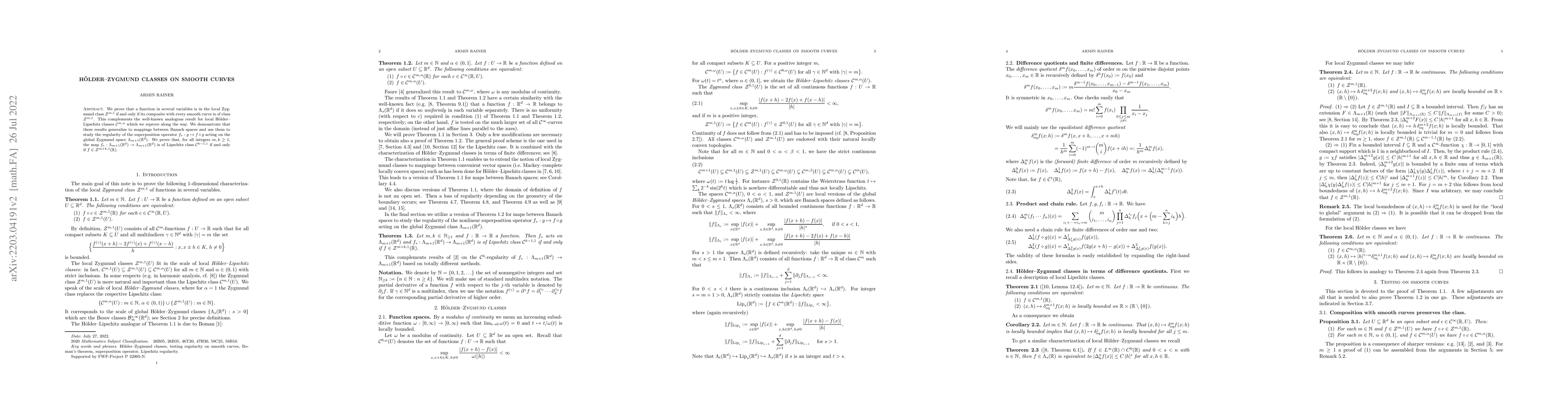 We prove that a function in several variables is in the local Zygmund class $\mathcal Z^{m,1}$ if and only if its composite with every smooth curve is of class $\mathcal Z^{m,1}$. This complements the well-known analogous result for local H\"older--Lipschitz classes $\mathcal C^{m,\alpha}$ which we reprove along the way. We demonstrate that these results generalize to mappings between Banach spaces and use them to study the regularity of the superposition operator $f_* : g \mapsto f \circ g$ acting on the global Zygmund space $\Lambda_{m+1}(\mathbb R^d)$. We prove that, for all integers $m,k\ge 1$, the map $f_* : \Lambda_{m+1}(\mathbb R^d) \to \Lambda_{m+1}(\mathbb R^d)$ is of Lipschitz class $\mathcal C^{k-1,1}$ if and only if $f \in \mathcal Z^{m+k,1}(\mathbb R)$.