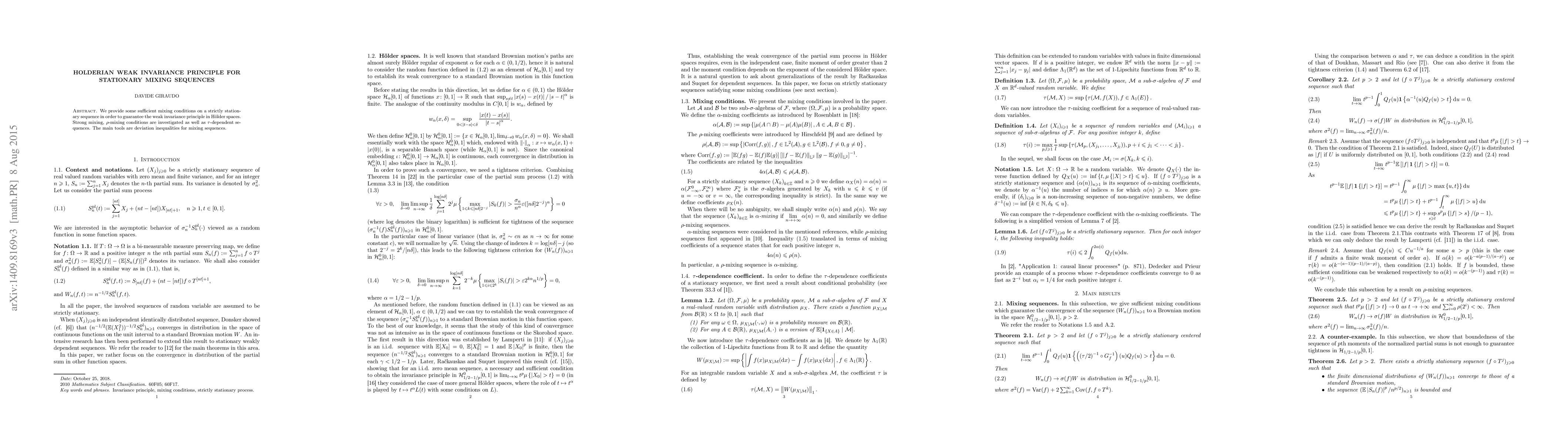 Summary: The paper establishes sufficient mixing conditions for strictly stationary sequences to ensure a weak invariance principle in H\"older spaces, employing strong mixing, $\rho$-mixing conditions, and Fuk-Nagaev type inequalities along with a truncation argument.