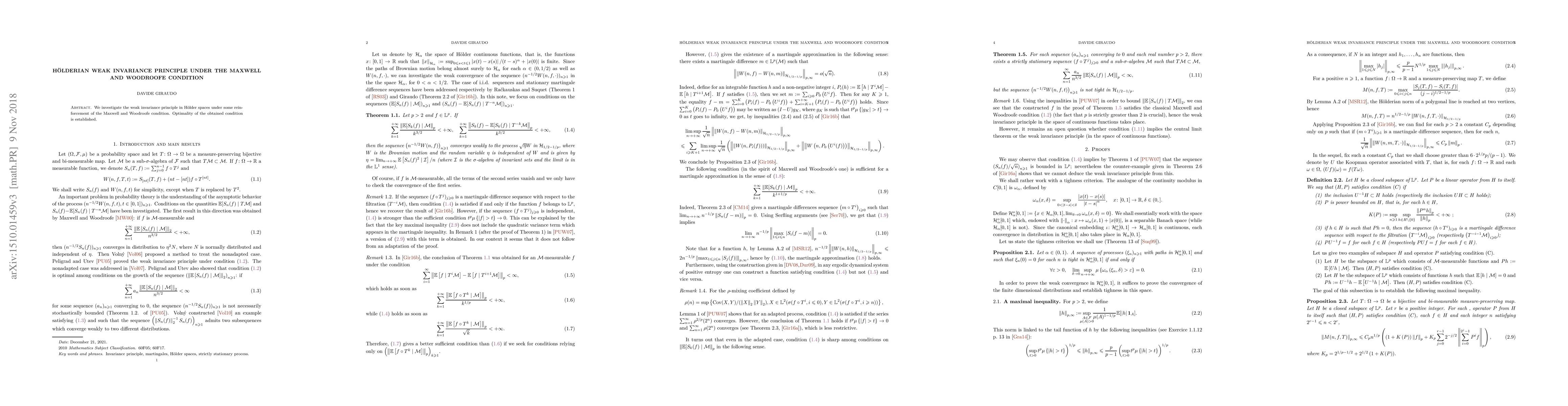 Summary: This paper examines the Hölderian weak invariance principle in Hölder spaces with enhanced Maxwell and Woodroofe conditions. It explores the robustness of the principle under these reinforced conditions.