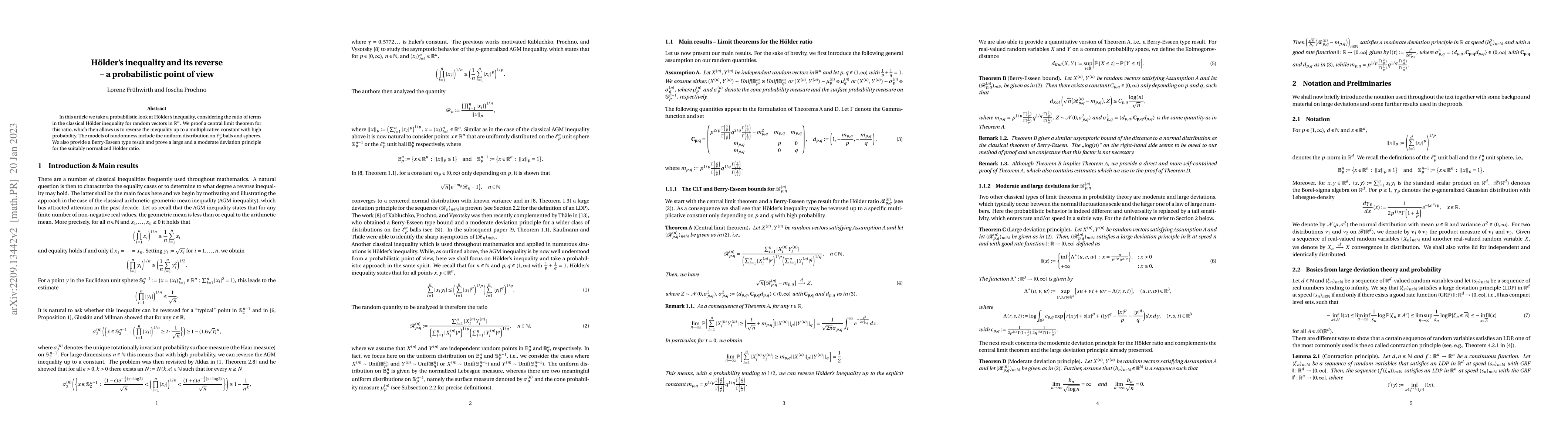 This paper probabilistically examines H\"older's inequality for random vectors, proving a central limit theorem for the ratio of terms, which allows for a reversed inequality up to a constant with high probability. It also includes Berry-Esseen results and large and moderate deviation principles for the normalized H\"older ratio.