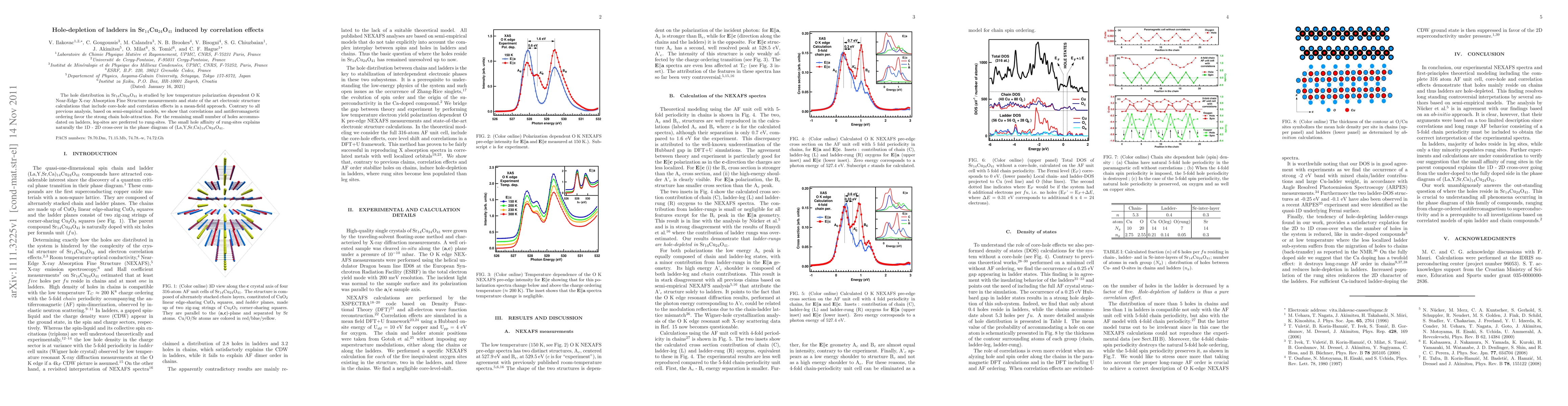 The hole distribution in Sr$_{14}$Cu$_{24}$O$_{41}$ is studied by low temperature polarization dependent O K Near-Edge X-ray Absorption Fine Structure measurements and state of the art electronic structure calculations that include core-hole and correlation effects in a mean-field approach. Contrary to all previous analysis, based on semi-empirical models, we show that correlations and antiferromagnetic ordering favor the strong chain hole-attraction. For the remaining small number of holes accommodated on ladders, leg-sites are preferred to rung-sites. The small hole affinity of rung-sites explains naturally the 1D - 2D cross-over in the phase diagram of (La,Y,Sr,Ca)$_{14}$Cu$_{24}$O$_{41}$