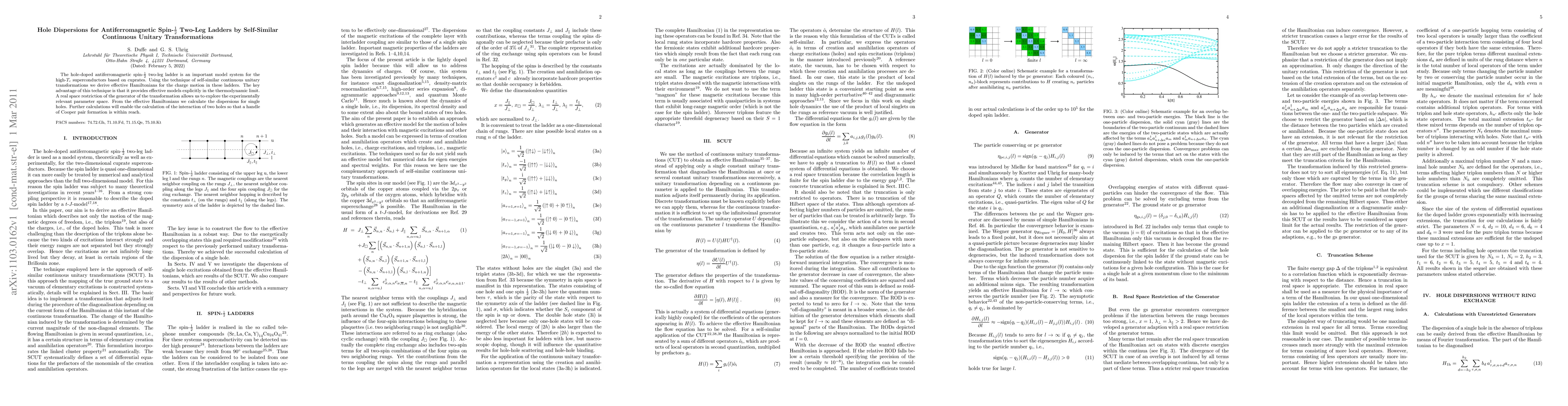 This research derives effective Hamiltonians for hole motion in antiferromagnetic spin-1/2 two-leg ladders using self-similar continuous unitary transformations. It calculates single-hole dispersions and aims to compute two-hole interaction for Cooper pair formation study.