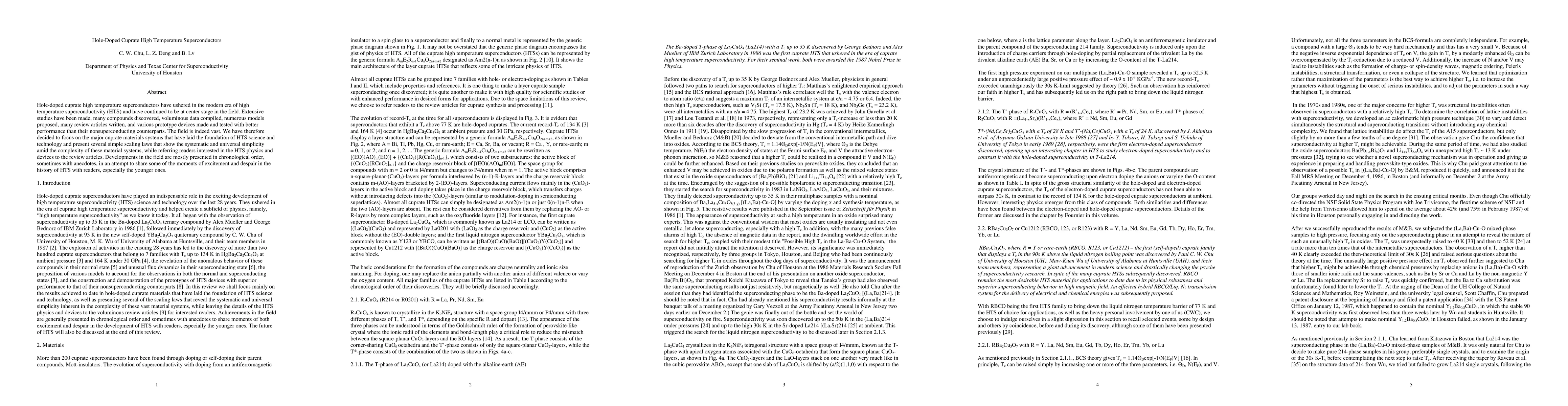 Hole-doped cuprate high temperature superconductors have ushered in the modern era of high temperature superconductivity (HTS) and have continued to be at center stage in the field. Extensive studies have been made, many compounds discovered, voluminous data compiled, numerous models proposed, many review articles written, and various prototype devices made and tested with better performance than their nonsuperconducting counterparts. The field is indeed vast. We have therefore decided to focus on the major cuprate materials systems that have laid the foundation of HTS science and technology and present several simple scaling laws that show the systematic and universal simplicity amid the complexity of these material systems, while referring readers interested in the HTS physics and devices to the review articles. Developments in the field are mostly presented in chronological order, sometimes with anecdotes, in an attempt to share some of the moments of excitement and despair in the history of HTS with readers, especially the younger ones.