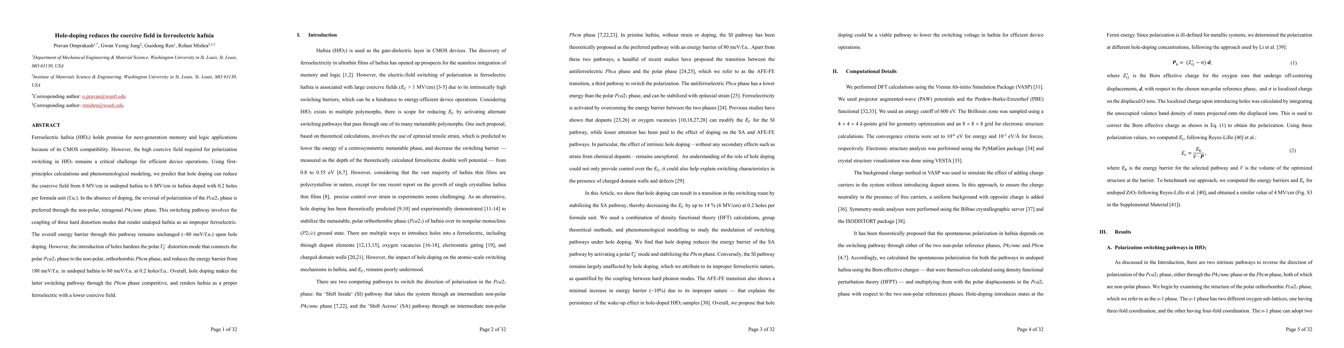 Ferroelectric hafnia holds promise for next-generation memory and logic applications because of its CMOS compatibility. However, the high coercive field required for polarization switching in hafnia remains a critical challenge for efficient device operations. Using first-principles calculations and phenomenological modeling, we predict that hole doping can reduce the coercive field from 8 MV/cm in undoped hafnia to 6 MV/cm in hafnia doped with 0.2 holes per formula unit (f.u.). In the absence of doping, the reversal of polarization of the Pca21 phase is preferred through the non-polar, tetragonal P42/nmc phase. This switching pathway involves the coupling of three hard distortion modes that render undoped hafnia as an improper ferroelectric. The overall energy barrier through this pathway remains unchanged (80 meV/f.u.) upon hole doping. However, the introduction of holes hardens the polar distortion mode that connects the polar Pca21 phase to the non-polar, orthorhombic Pbcm phase, and reduces the energy barrier from 180 meV/f.u. in undoped hafnia to 80 meV/f.u. at 0.2 holes/f.u.. Overall, hole doping makes the latter switching pathway through the Pbcm phase competitive, and renders hafnia as a proper ferroelectric with a lower coercive field.