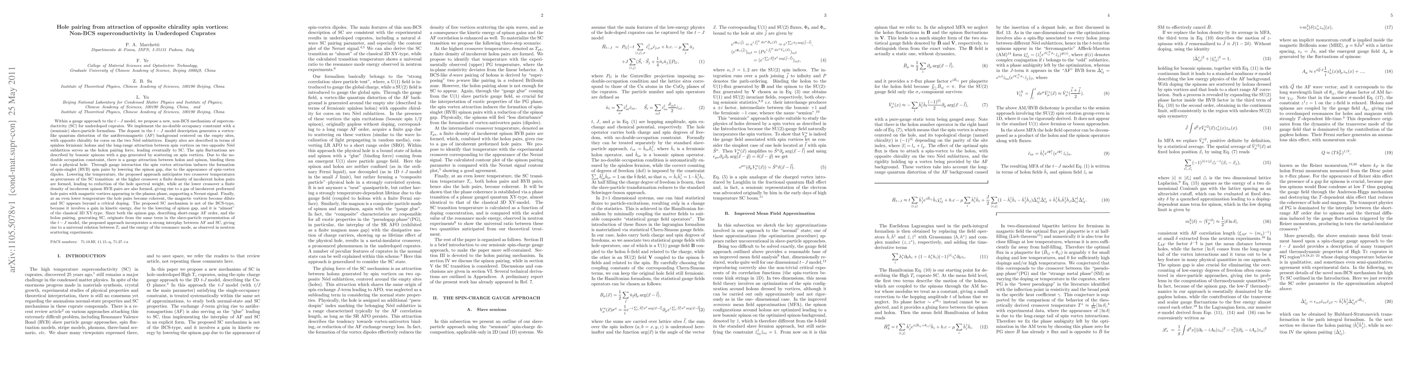 This paper proposes a novel non-BCS superconductivity mechanism for underdoped cuprates, based on the attraction between opposite chirality spin vortices. The mechanism involves holon pairing facilitated by gauge interactions, leading to a spin-singlet RVB state and a transition to superconductivity at a critical doping level.
