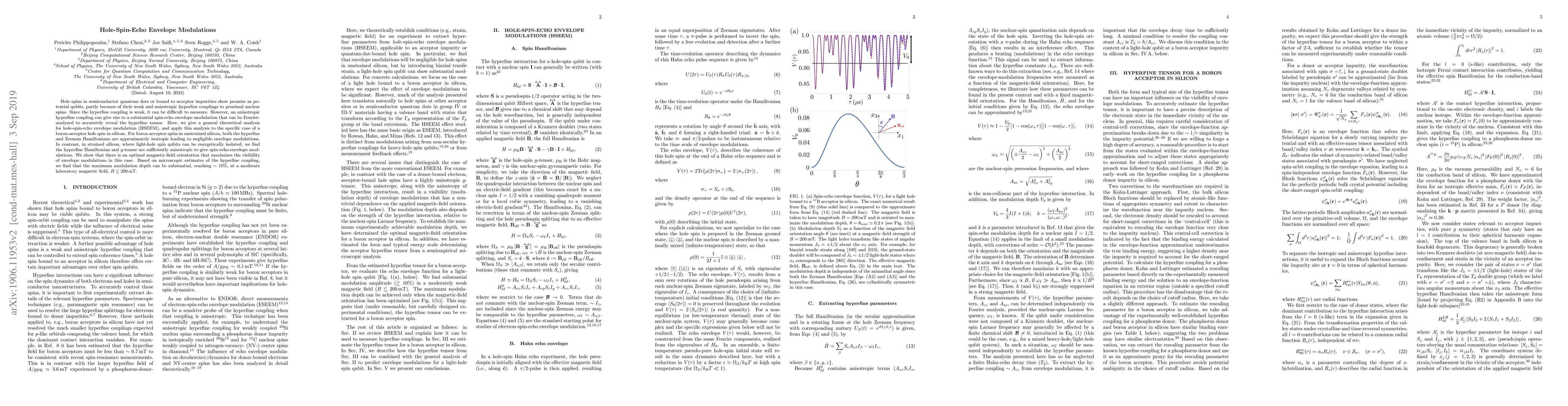Hole spins in semiconductor quantum dots or bound to acceptor impurities show promise as potential qubits, partly because of their weak and anisotropic hyperfine couplings to proximal nuclear spins. Since the hyperfine coupling is weak, it can be difficult to measure. However, an anisotropic hyperfine coupling can give rise to a substantial spin-echo envelope modulation that can be Fourier-analyzed to accurately reveal the hyperfine tensor. Here, we give a general theoretical analysis for hole-spin-echo envelope modulation (HSEEM), and apply this analysis to the specific case of a boron-acceptor hole spin in silicon. For boron acceptor spins in unstrained silicon, both the hyperfine and Zeeman Hamiltonians are approximately isotropic leading to negligible envelope modulations. In contrast, in strained silicon, where light-hole spin qubits can be energetically isolated, we find the hyperfine Hamiltonian and $g$-tensor are sufficiently anisotropic to give spin-echo-envelope modulations. We show that there is an optimal magnetic-field orientation that maximizes the visibility of envelope modulations in this case. Based on microscopic estimates of the hyperfine coupling, we find that the maximum modulation depth can be substantial, reaching $\sim 10\%$, at a moderate laboratory magnetic field, $B\lesssim 200\,\mathrm{mT}$.