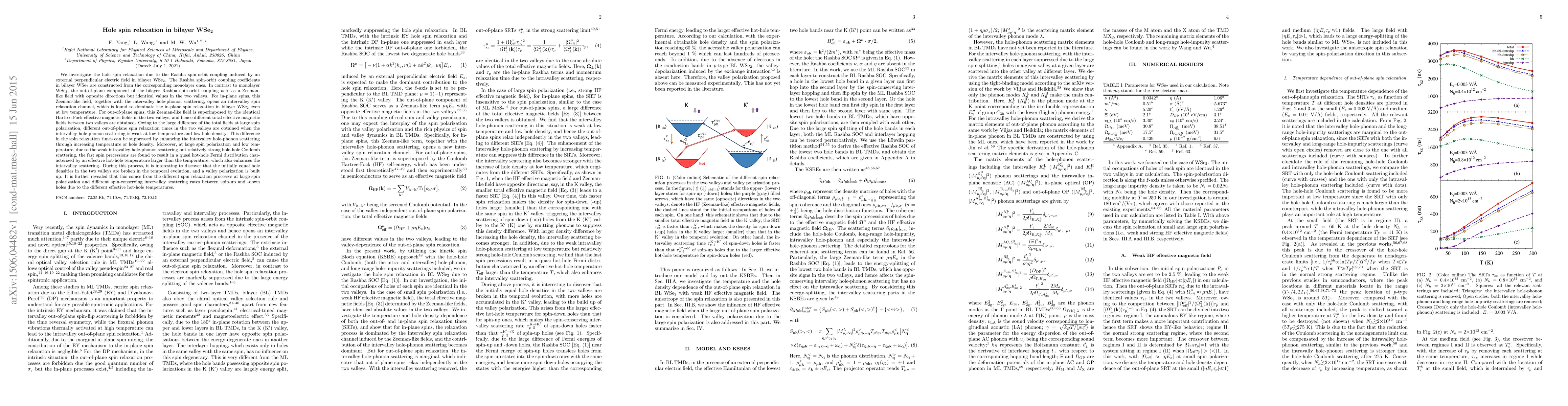We investigate the hole spin relaxation due to the Rashba spin-orbit coupling induced by an external perpendicular electric field in bilayer WSe$_2$. The Rashba spin-orbit coupling coefficients in bilayer WSe$_2$ are constructed from the corresponding monolayer ones. In contrast to monolayer WSe$_2$, the out-of-plane component of the bilayer Rashba spin-orbit coupling acts as a Zeeman-like field with opposite directions but identical values in the two valleys. For in-plane spins, this Zeeman-like field, together with the intervalley hole-phonon scattering, opens an intervalley spin relaxation channel, which is found to dominate the in-plane spin relaxation in bilayer WSe$_2$ even at low temperature. For out-of-plane spins, this Zeeman-like field is superimposed by the identical Hartree-Fock effective magnetic fields in the two valleys, and hence different total effective magnetic fields between two valleys are obtained. Owing to the large difference of the total fields at large spin polarization, different out-of-plane spin relaxation times in the two valleys are obtained when the intervalley hole-phonon scattering is weak at low temperature and low hole density. This difference in the spin relaxation times can be suppressed by enhancing the intervalley hole-phonon scattering through increasing temperature or hole density. Moreover, at large spin polarization and low temperature, due to the weak intravalley hole-phonon scattering but relatively strong hole-hole Coulomb scattering, the fast spin precessions are found to result in a quasi hot-hole Fermi distribution characterized by an effective hot-hole temperature larger than the temperature, which also enhances the intervalley scattering. During this process, it is interesting to discover that the initially equal hole densities in the two valleys are broken in the temporal evolution, and a valley polarization is built up. ....