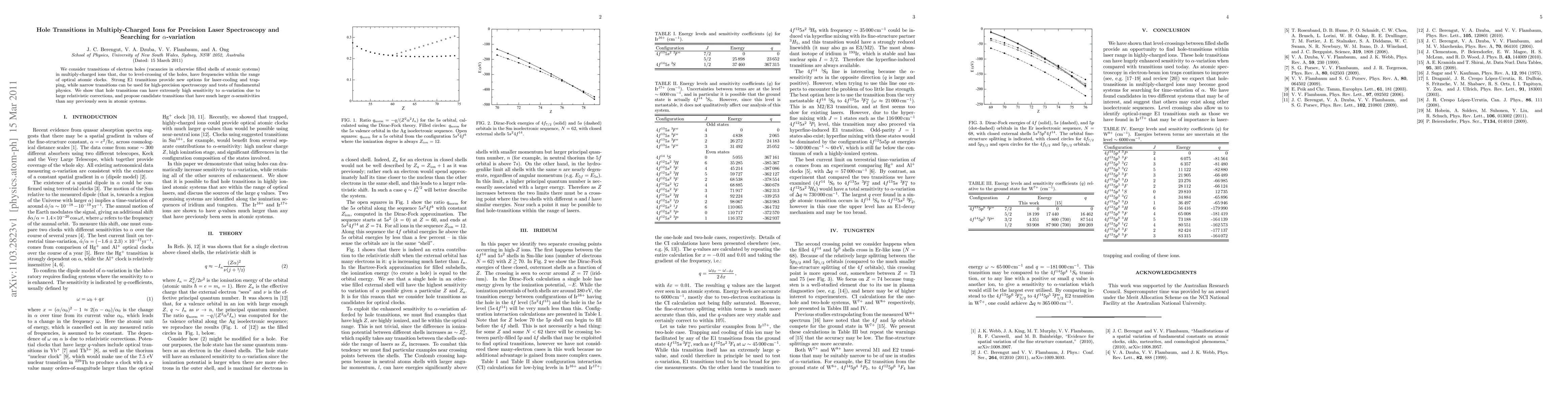 Researchers have discovered that transitions of electron holes in multiply-charged ions can provide extremely high sensitivity to alpha-variation, making them useful for precision laser spectroscopy and tests of fundamental physics.