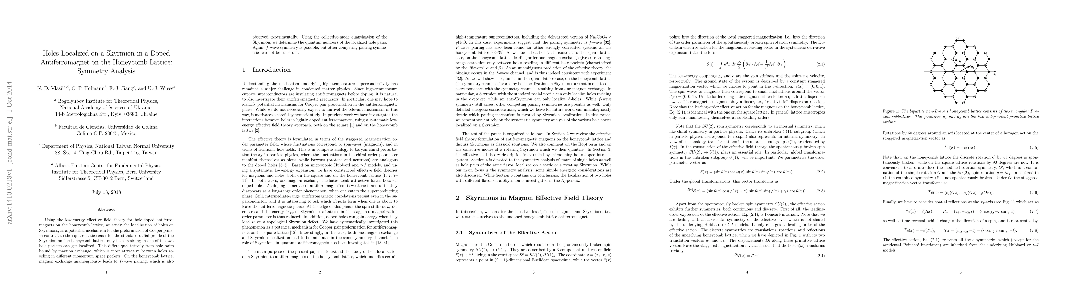 Using the low-energy effective field theory for hole-doped antiferromagnets on the honeycomb lattice, we study the localization of holes on Skyrmions, as a potential mechanism for the preformation of Cooper pairs. In contrast to the square lattice case, for the standard radial profile of the Skyrmion on the honeycomb lattice, only holes residing in one of the two hole pockets can get localized. This differs qualitatively from hole pairs bound by magnon exchange, which is most attractive between holes residing in different momentum space pockets. On the honeycomb lattice, magnon exchange unambiguously leads to $f$-wave pairing, which is also observed experimentally. Using the collective-mode quantization of the Skyrmion, we determine the quantum numbers of the localized hole pairs. Again, $f$-wave symmetry is possible, but other competing pairing symmetries cannot be ruled out.