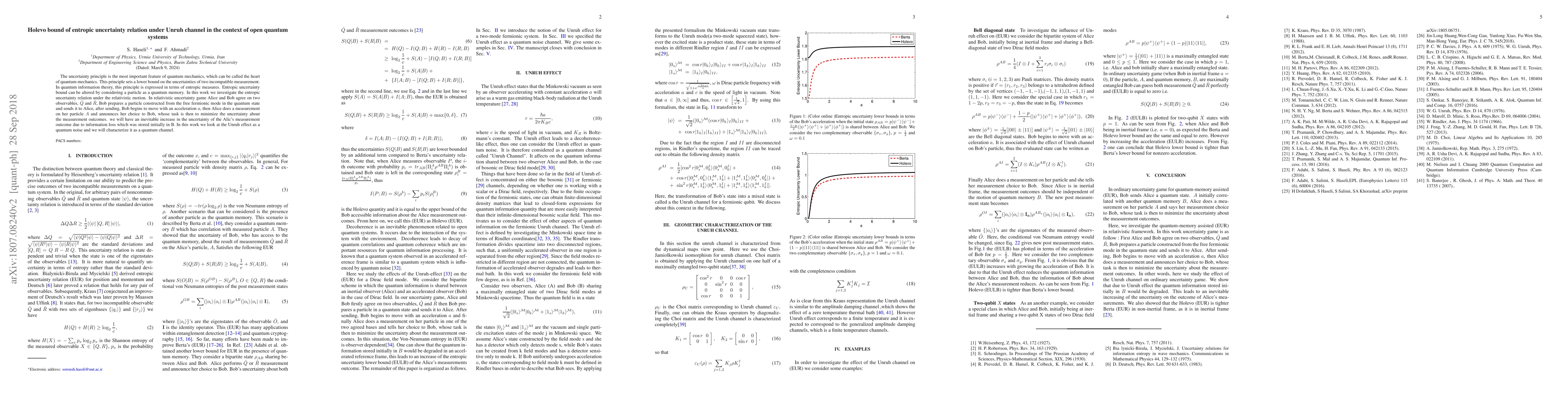 The uncertainty principle is the most important feature of quantum mechanics, which can be called the heart of quantum mechanics. This principle sets a lower bound on the uncertainties of two incompatible measurement. In quantum information theory, this principle is expressed in terms of entropic measures. Entropic uncertainty bound can be altered by considering a particle as a quantum memory. In this work we investigate the entropic uncertainty relation under the relativistic motion. In relativistic uncertainty game Alice and Bob agree on two observables, $\hat{Q}$ and $\hat{R}$, Bob prepares a particle constructed from the free fermionic mode in the quantum state and sends it to Alice, after sending, Bob begins to move with an acceleration $a$, then Alice does a measurement on her particle $A$ and announces her choice to Bob, whose task is then to minimize the uncertainty about the measurement outcomes. we will have an inevitable increase in the uncertainty of the Alic's measurement outcome due to information loss which was stored initially in B. In this work we look at the Unruh effect as a quantum noise and we will characterize it as a quantum channel.