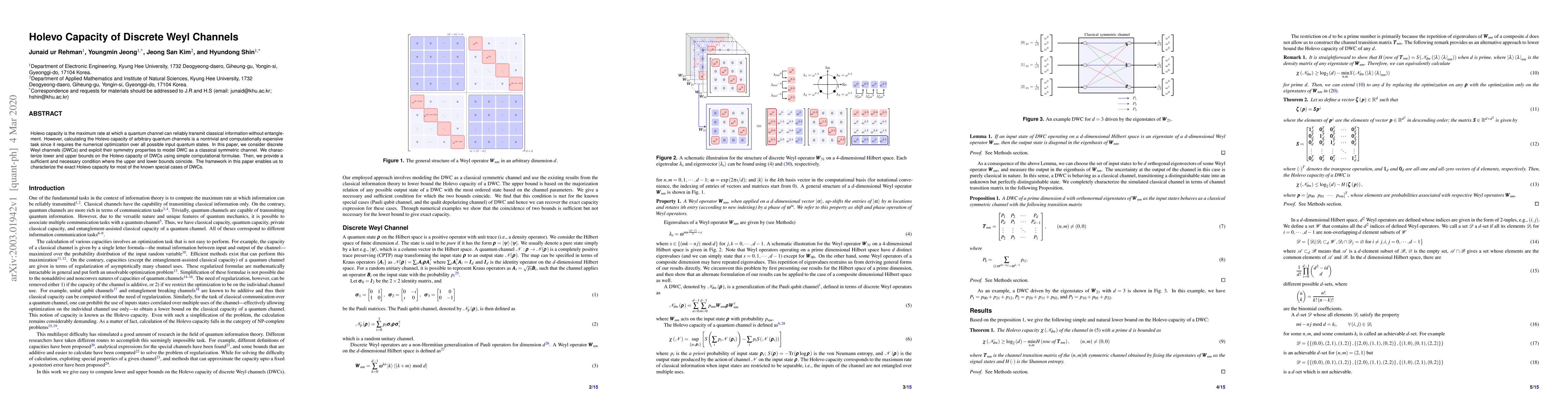 Holevo capacity is the maximum rate at which a quantum channel can reliably transmit classical information without entanglement. However, calculating the Holevo capacity of arbitrary quantum channels is a nontrivial and computationally expensive task since it requires the numerical optimization over all possible input quantum states. In this paper, we consider discrete Weyl channels (DWCs) and exploit their symmetry properties to model DWC as a classical symmetric channel. We characterize lower and upper bounds on the Holevo capacity of DWCs using simple computational formulae. Then, we provide a sufficient and necessary condition where the upper and lower bounds coincide. The framework in this paper enables us to characterize the exact Holevo capacity for most of the known special cases of DWCs.