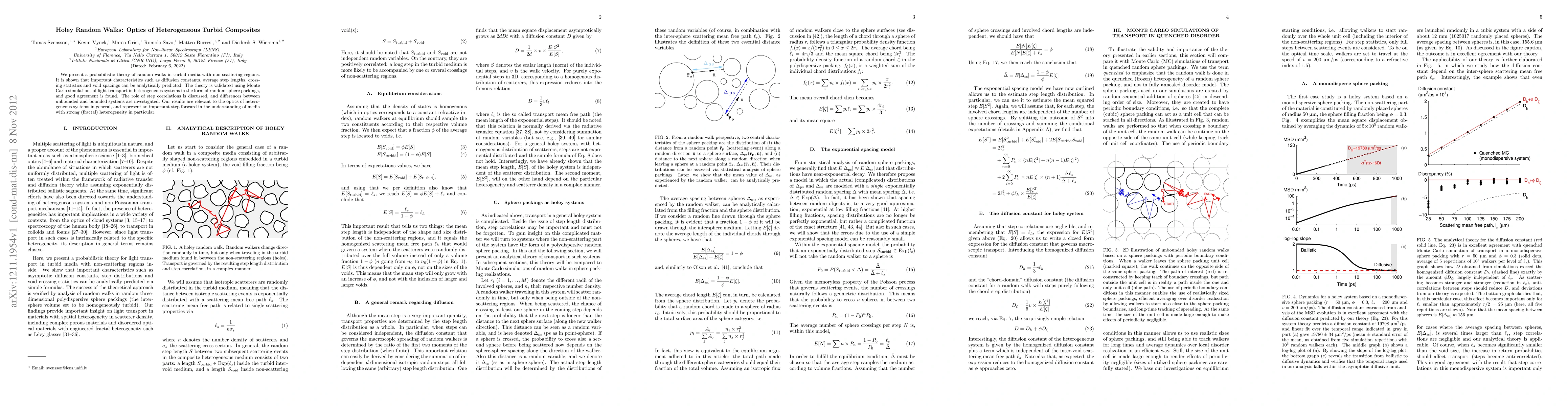 We present a probabilistic theory of random walks in turbid media with non-scattering regions. It is shown that important characteristics such as diffusion constants, average step lengths, crossing statistics and void spacings can be analytically predicted. The theory is validated using Monte Carlo simulations of light transport in heterogeneous systems in the form of random sphere packings, and good agreement is found. The role of step correlations is discussed, and differences between unbounded and bounded systems are investigated. Our results are relevant to the optics of heterogeneous systems in general, and represent an important step forward in the understanding of media with strong (fractal) heterogeneity in particular.