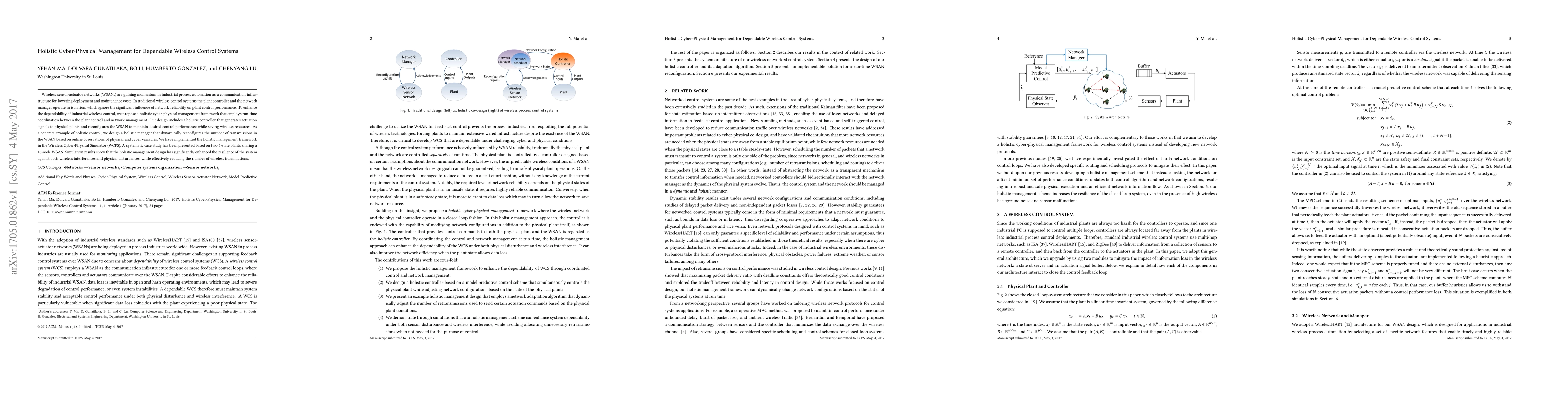 This paper proposes a holistic cyber-physical management framework to enhance the dependability of industrial wireless control systems by integrating plant control and network management. The framework dynamically reconfigures the wireless sensor-actuator network to maintain control performance while minimizing wireless resource usage, demonstrating improved resilience and reduced transmission counts in simulations.