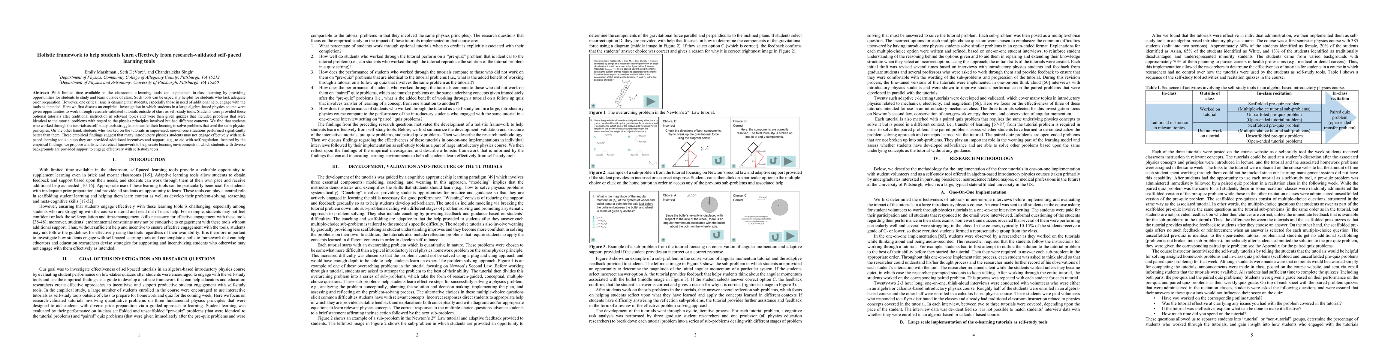 With limited time available in the classroom, e-learning tools can supplement in-class learning by providing opportunities for students to study and learn outside of class. Such tools can be especially helpful for students who lack adequate prior preparation. However, one critical issue is ensuring that students, especially those in need of additional help, engage with the tools as intended. Here we first discuss an empirical investigation in which students in a large algebra-based physics course were given opportunities to work through research-validated tutorials outside of class as self-study tools. Students were provided these optional tutorials after traditional instruction in relevant topics and were then given quizzes that included problems that were identical to the tutorial problems with regard to the physics principles involved but had different contexts. We find that students who worked through the tutorials as self-study tools struggled to transfer their learning to solve problems that used the same physics principles. On the other hand, students who worked on the tutorials in supervised, one-on-one situations performed significantly better than them. These empirical findings suggest that many introductory physics students may not engage effectively with self-paced learning tools unless they are provided additional incentives and support, e.g., to aid with self-regulation. Inspired by the empirical findings, we propose a holistic theoretical framework to help create learning environments in which students with diverse backgrounds are provided support to engage effectively with self-study tools.