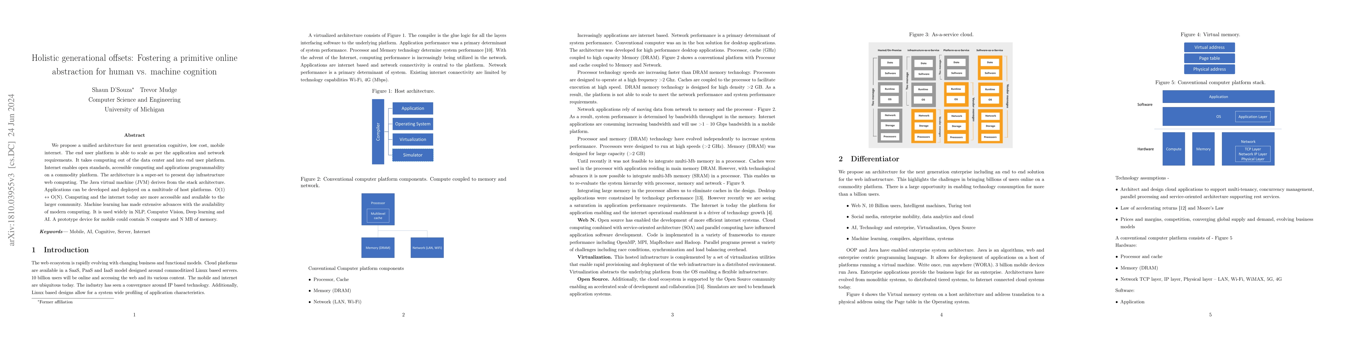We propose a unified architecture for next generation cognitive, low cost, mobile internet. The end user platform is able to scale as per the application and network requirements. It takes computing out of the data center and into end user platform. Internet enables open standards, accessible computing and applications programmability on a commodity platform. The architecture is a super-set to present day infrastructure web computing. The Java virtual machine (JVM) derives from the stack architecture. Applications can be developed and deployed on a multitude of host platforms. O(1) <-> O(N). Computing and the internet today are more accessible and available to the larger community. Machine learning has made extensive advances with the availability of modern computing. It is used widely in NLP, Computer Vision, Deep learning and AI. A prototype device for mobile could contain N compute and N MB of memory.