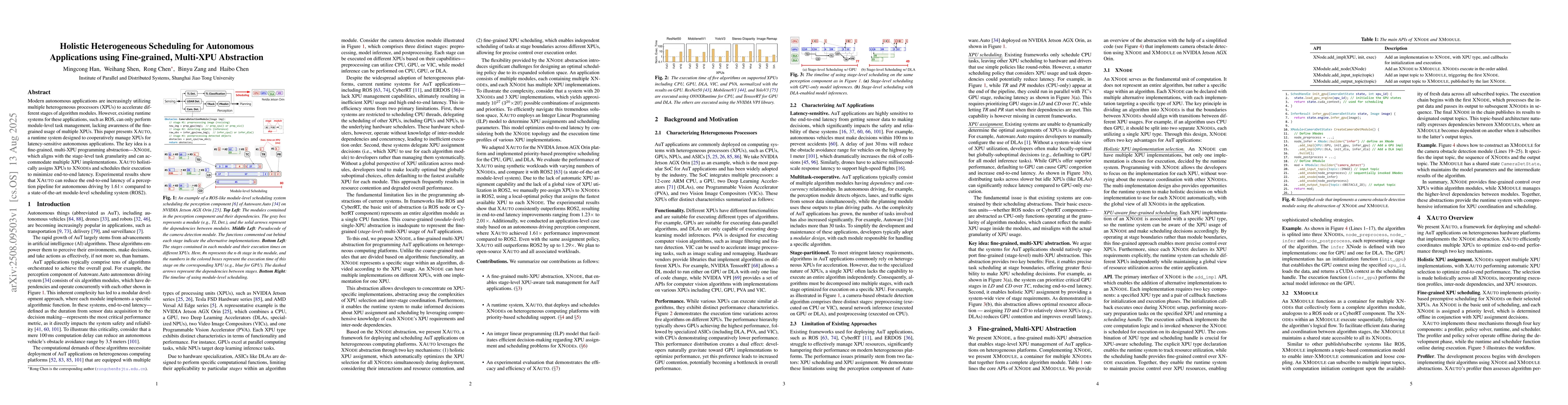 Modern autonomous applications are increasingly utilizing multiple heterogeneous processors (XPUs) to accelerate different stages of algorithm modules. However, existing runtime systems for these applications, such as ROS, can only perform module-level task management, lacking awareness of the fine-grained usage of multiple XPUs. This paper presents XAUTO, a runtime system designed to cooperatively manage XPUs for latency-sensitive autonomous applications. The key idea is a fine-grained, multi-XPU programming abstraction -- XNODE, which aligns with the stage-level task granularity and can accommodate multiple XPU implementations. XAUTO holistically assigns XPUs to XNODEs and schedules their execution to minimize end-to-end latency. Experimental results show that XAUTO can reduce the end-to-end latency of a perception pipeline for autonomous driving by 1.61x compared to a state-of-the-art module-level scheduling system (ROS2).