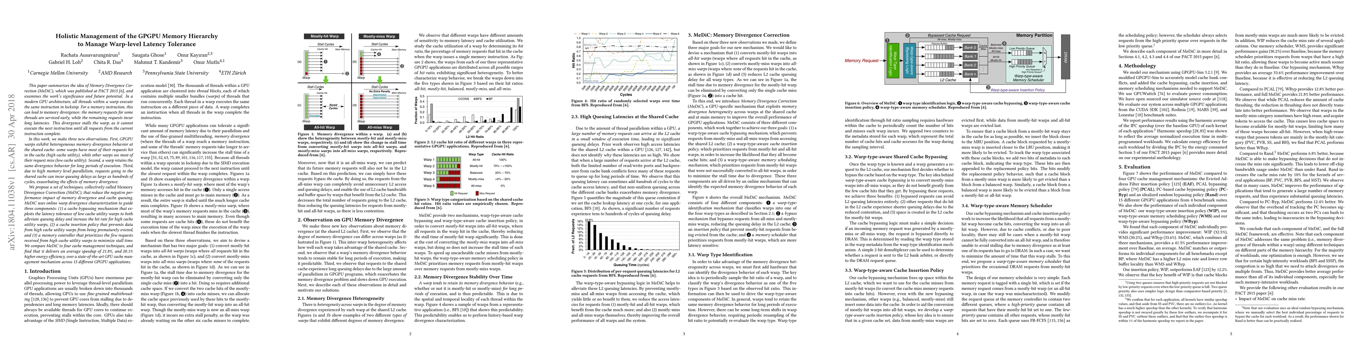 In a modern GPU architecture, all threads within a warp execute the same instruction in lockstep. For a memory instruction, this can lead to memory divergence: the memory requests for some threads are serviced early, while the remaining requests incur long latencies. This divergence stalls the warp, as it cannot execute the next instruction until all requests from the current instruction complete. In this work, we make three new observations. First, GPGPU warps exhibit heterogeneous memory divergence behavior at the shared cache: some warps have most of their requests hit in the cache, while other warps see most of their request miss. Second, a warp retains the same divergence behavior for long periods of execution. Third, requests going to the shared cache can incur queuing delays as large as hundreds of cycles, exacerbating the effects of memory divergence. We propose a set of techniques, collectively called Memory Divergence Correction (MeDiC), that reduce the negative performance impact of memory divergence and cache queuing. MeDiC delivers an average speedup of 21.8%, and 20.1% higher energy efficiency, over a state-of-the-art GPU cache management mechanism across 15 different GPGPU applications.