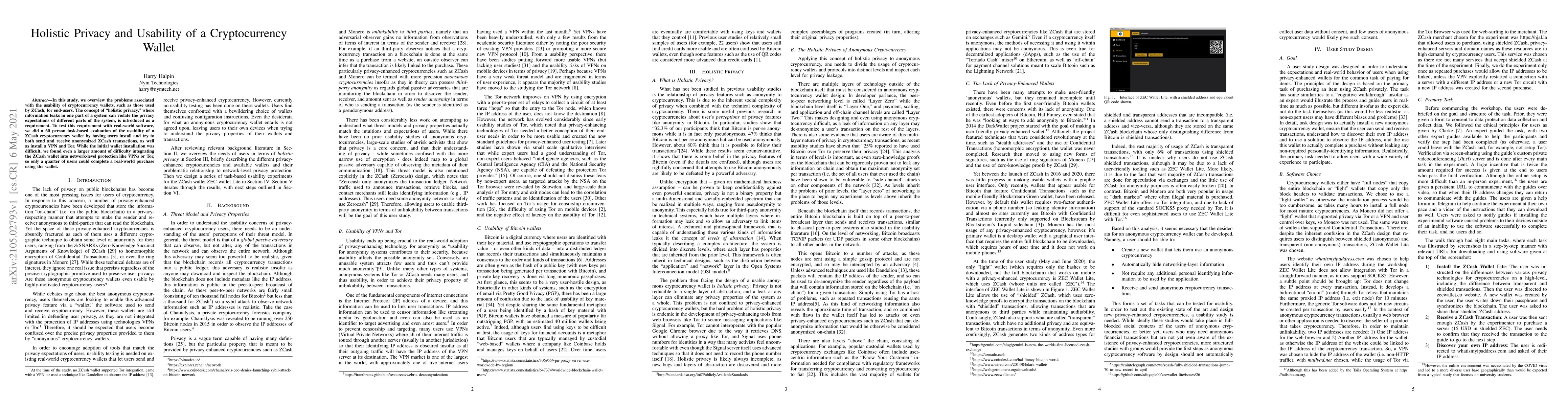 This study examines the usability challenges of cryptocurrency wallets, particularly ZCash, highlighting significant difficulties in integrating these wallets with network-level privacy tools like VPNs and Tor. Despite a task-based evaluation with 60 participants, only a quarter successfully completed a real-world purchase, underscoring the need for improved holistic privacy and usability.