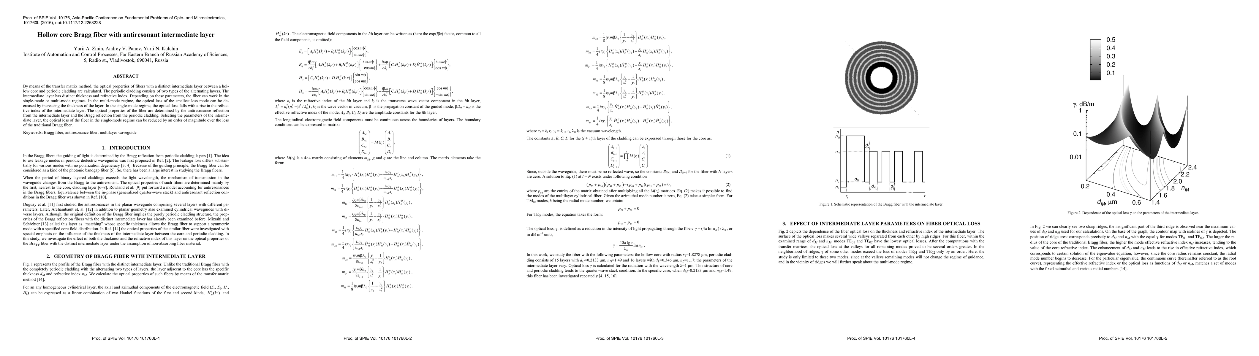 This paper investigates the optical properties of hollow core Bragg fibers with an antiresonant intermediate layer using the transfer matrix method, showing that the fiber can operate in single- or multi-mode regimes with tunable optical loss. The optical loss can be significantly reduced by adjusting the intermediate layer's thickness and refractive index.