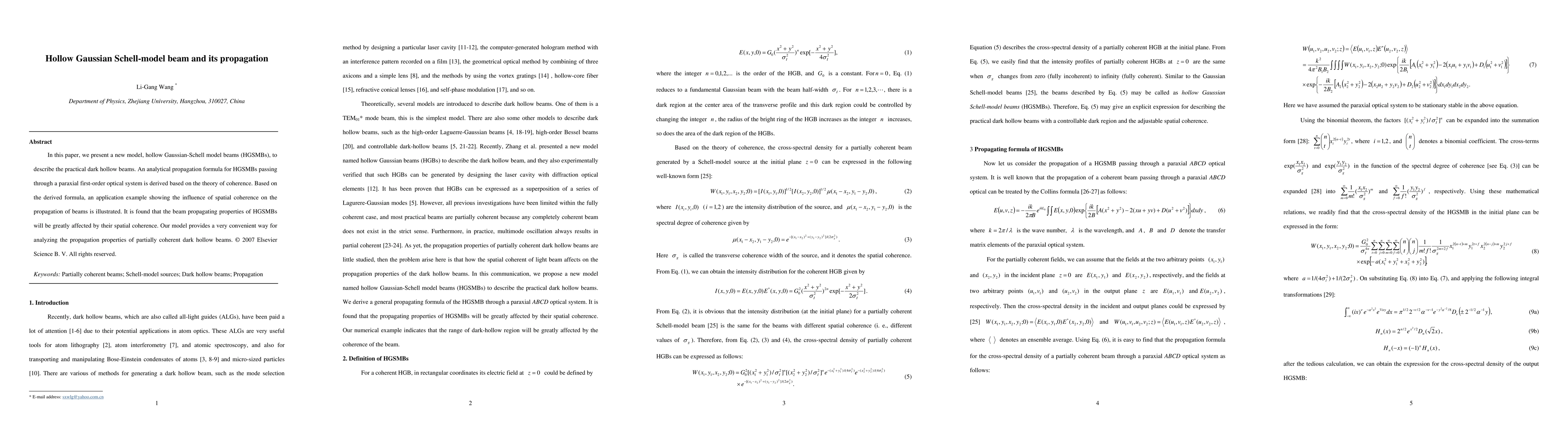 This paper introduces hollow Gaussian-Schell model beams (HGSMBs) to describe dark hollow beams and derives an analytical propagation formula for them. The study finds that spatial coherence significantly affects the propagation properties of HGSMBs, offering a useful model for analyzing such beams.