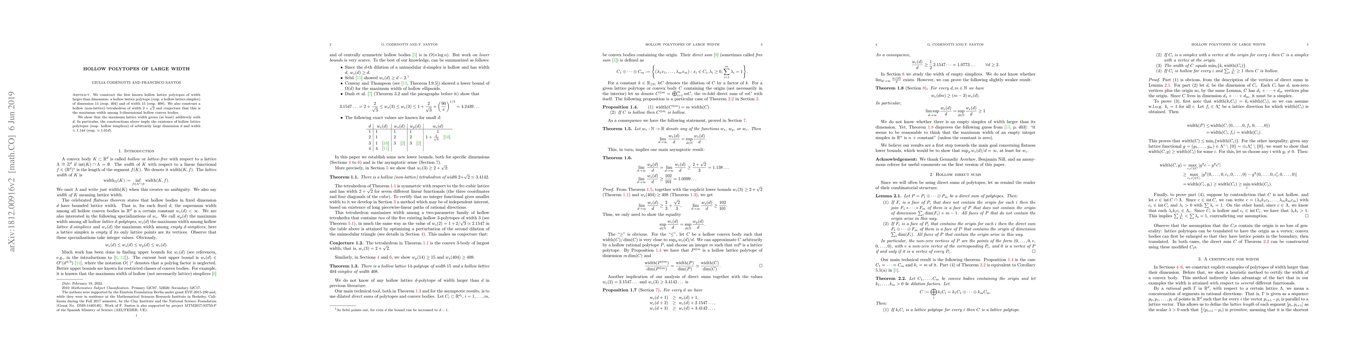 This paper constructs the first hollow lattice polytopes with width exceeding their dimension, specifically a $14$-dimensional polytope of width $15$ and a $404$-dimensional simplex of width $408$. It also presents a hollow non-lattice tetrahedron of width $2+\sqrt2$ and conjectures it as the maximum width among $3$-dimensional hollow convex bodies. The study further demonstrates that the maximum lattice width grows at least additively with dimension.