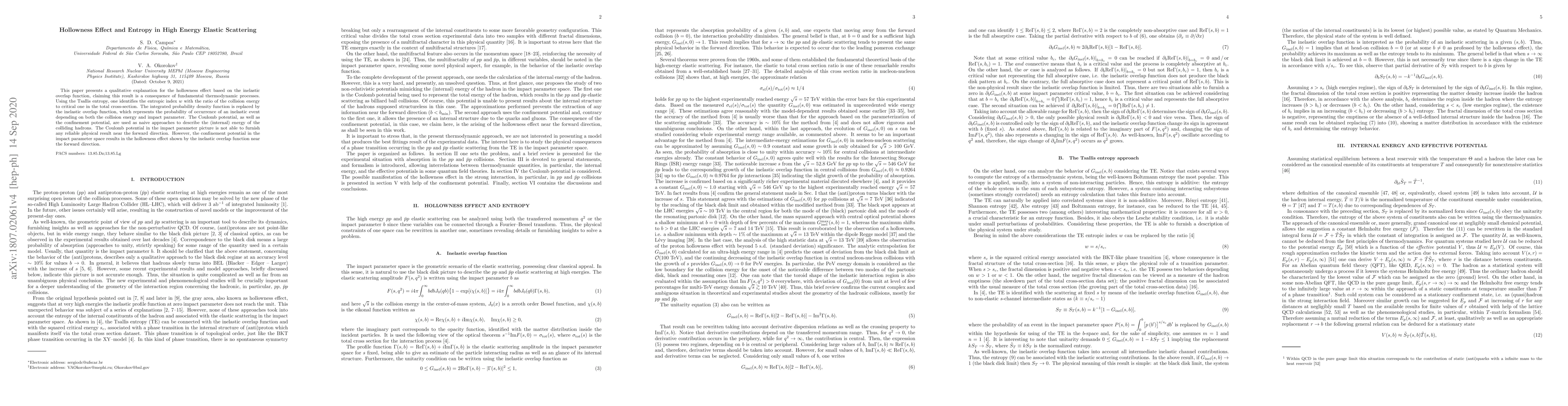 This paper presents a qualitative explanation for the hollowness effect based on the inelastic overlap function, claiming this result is a consequence of fundamental thermodynamic processes. Using the Tsallis entropy, one identifies the entropic index $w$ with the ratio of the collision energy to critical one in the total cross-section. The integrated probability density function is replaced by the inelastic overlap function, which represents the probability of occurrence of an inelastic event depending on both the collision energy and impact parameter. The Coulomb potential, as well as the confinement potential, are used as naive approaches to describe the (internal) energy of the colliding hadrons. The Coulomb potential in the impact parameter picture is not able to furnish any reliable physical result near the forward direction. However, the confinement potential in the impact parameter space results in the hollowness effect shown by the inelastic overlap function near the forward direction.