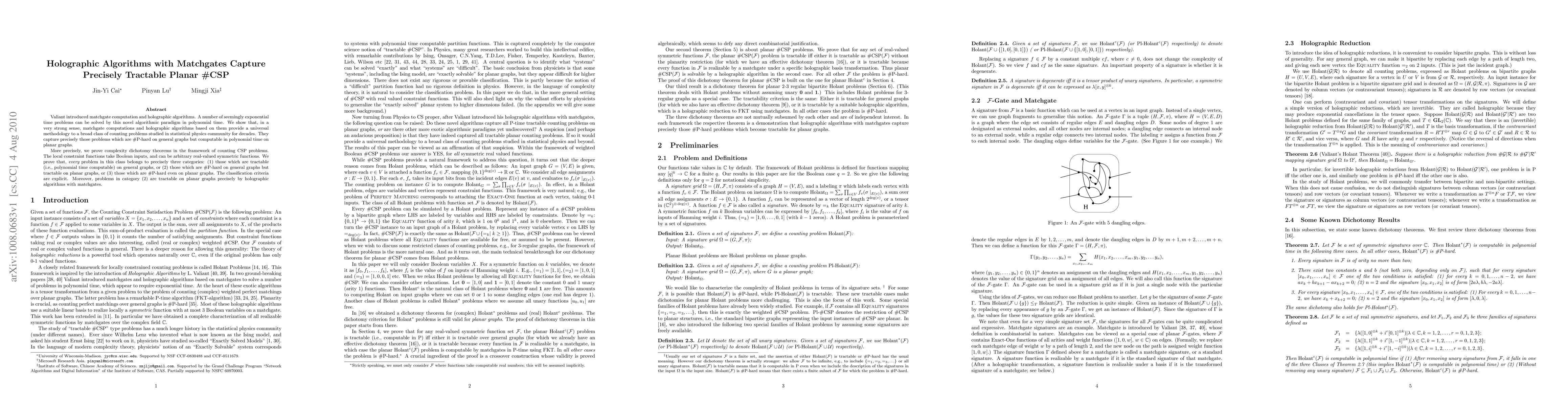 This paper demonstrates that matchgate computations and holographic algorithms precisely classify planar #CSP problems, distinguishing them into three categories: tractable on general graphs, tractable on planar graphs via holographic algorithms, and #P-hard even on planar graphs. The methodology provides a universal framework for solving a broad class of counting problems in statistical physics.