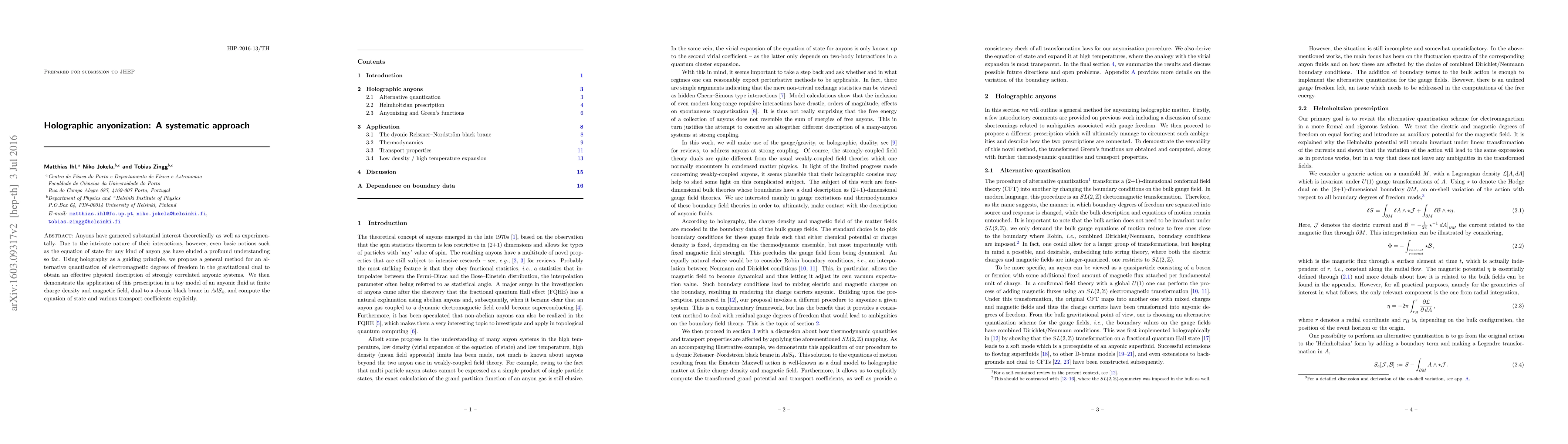 Researchers propose a method using holography to study anyonic systems, which can lead to a better understanding of the equation of state and transport coefficients for strongly correlated anyons. The approach is demonstrated in a toy model of an anyonic fluid at finite charge density and magnetic field.