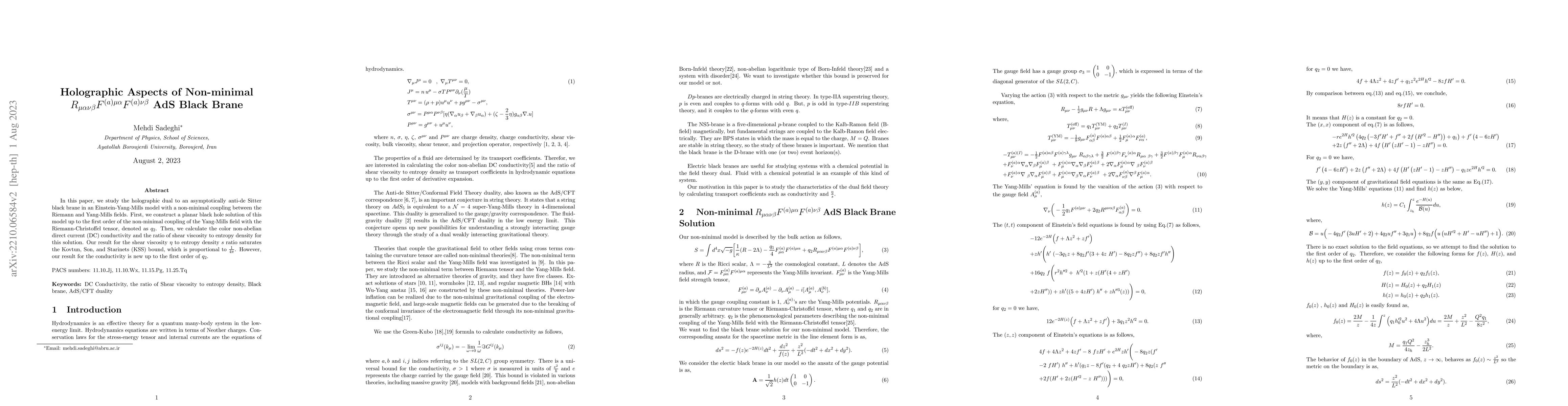 This paper investigates the holographic dual of an anti-de Sitter black brane in an Einstein-Yang-Mills model with non-minimal coupling, deriving a planar black hole solution and calculating the color non-abelian DC conductivity and the $\eta/s$ ratio, which saturates the KSS bound. The study also presents a new result for conductivity up to the first order of the coupling parameter $q_2$.