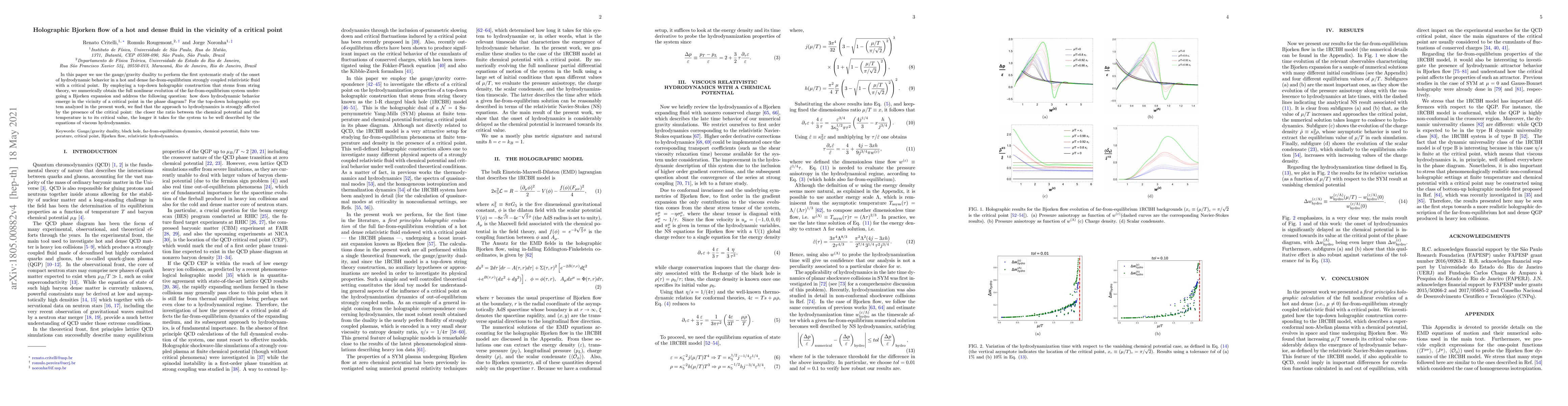 This paper investigates the emergence of hydrodynamic behavior in a strongly coupled relativistic fluid near a critical point using the gauge/gravity duality. The study finds that the proximity to the critical point significantly delays the transition to hydrodynamics, as evidenced by the nonlinear evolution during a Bjorken expansion.