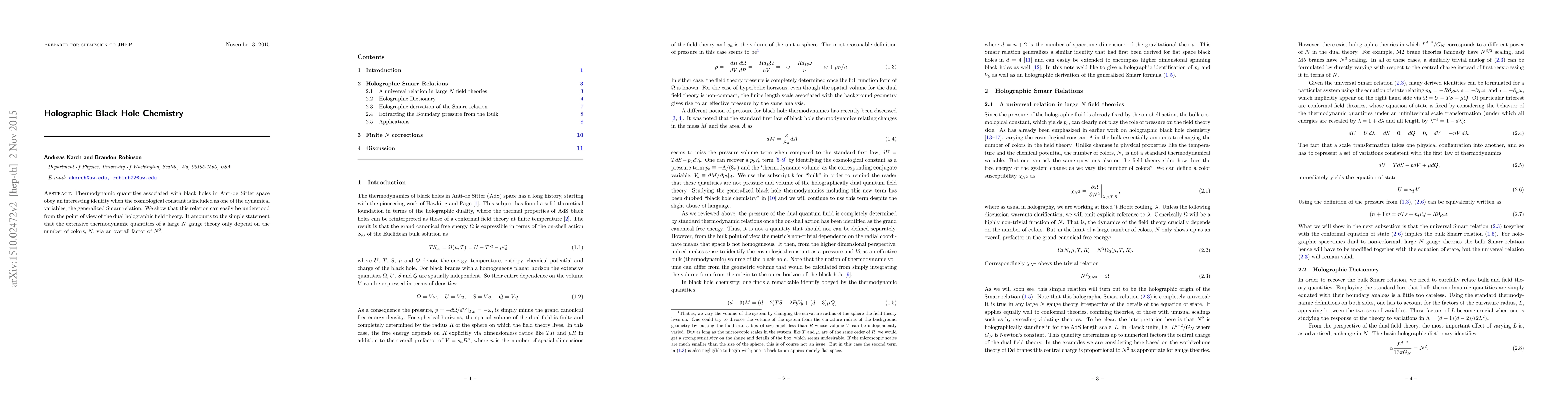 Thermodynamic quantities associated with black holes in Anti-de Sitter space obey an interesting identity when the cosmological constant is included as one of the dynamical variables, the generalized Smarr relation. We show that this relation can easily be understood from the point of view of the dual holographic field theory. It amounts to the simple statement that the extensive thermodynamic quantities of a large $N$ gauge theory only depend on the number of colors, $N$, via an overall factor of $N^2$.