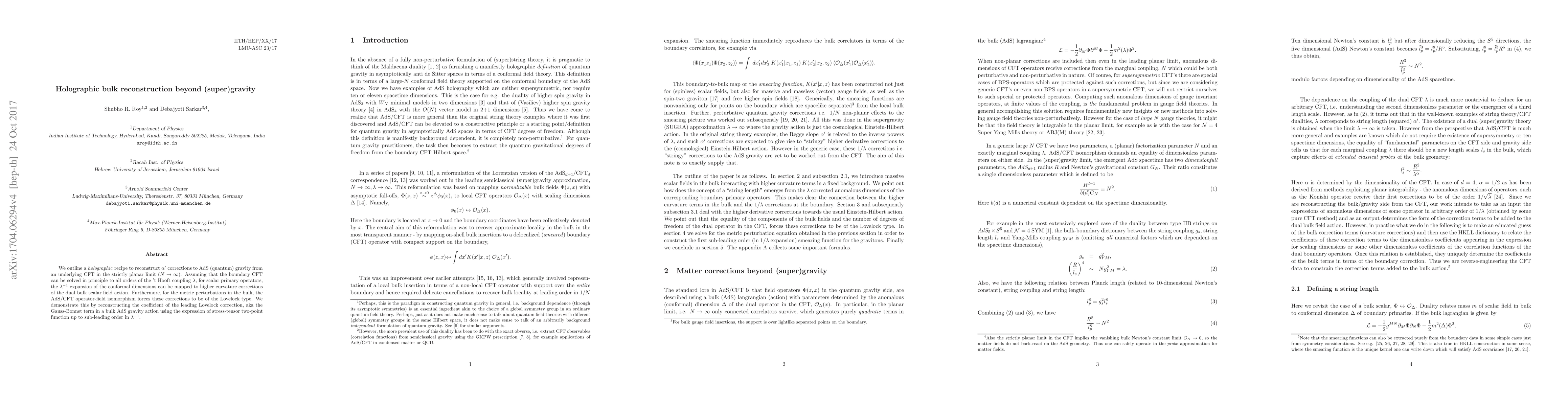 Researchers developed a method to reconstruct corrections to AdS gravity from an underlying CFT in the planar limit, allowing for the mapping of conformal dimensions to higher curvature corrections and metric perturbations.