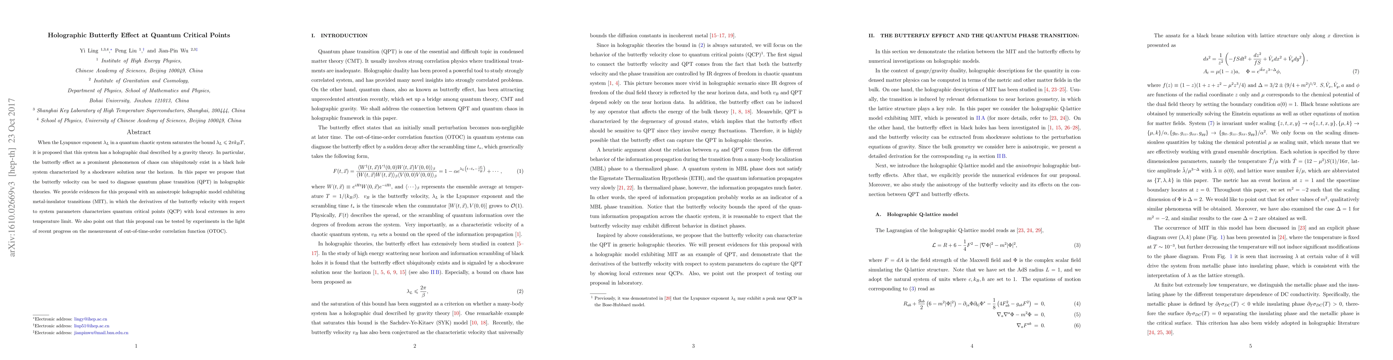 This paper proposes that the butterfly velocity in a holographic dual of a quantum chaotic system can diagnose quantum phase transitions, using an anisotropic holographic model to demonstrate this phenomenon. It suggests that the derivatives of the butterfly velocity can characterize quantum critical points, and highlights the potential for experimental verification through measurements of out-of-time-order correlation functions.
