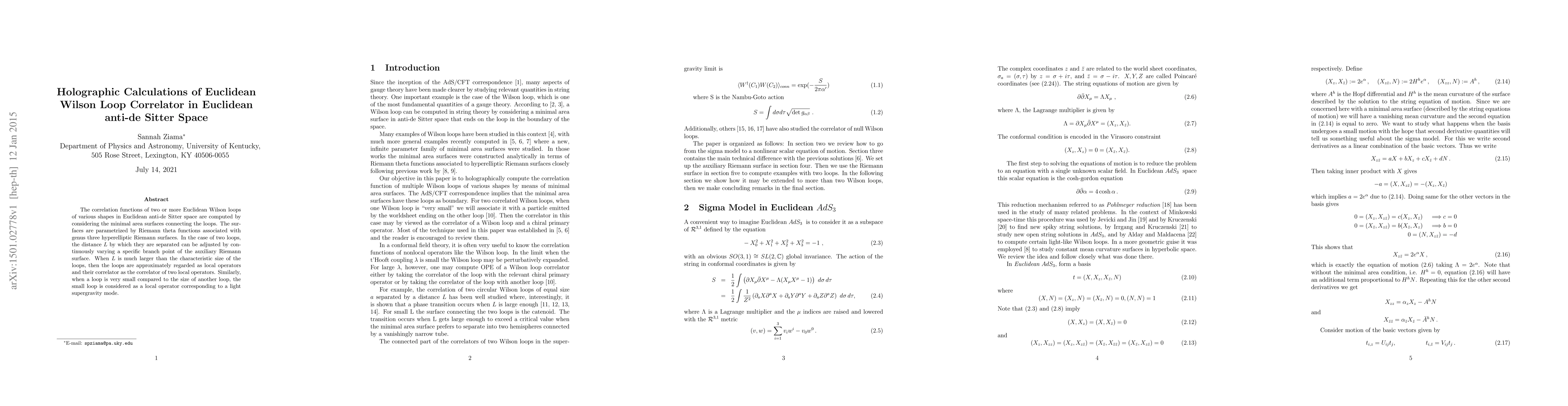 This paper computes correlation functions of Euclidean Wilson loops in anti-de Sitter space using minimal area surfaces and Riemann theta functions. It finds that when loops are sufficiently separated or one is much smaller than the other, they can be treated as local operators.
