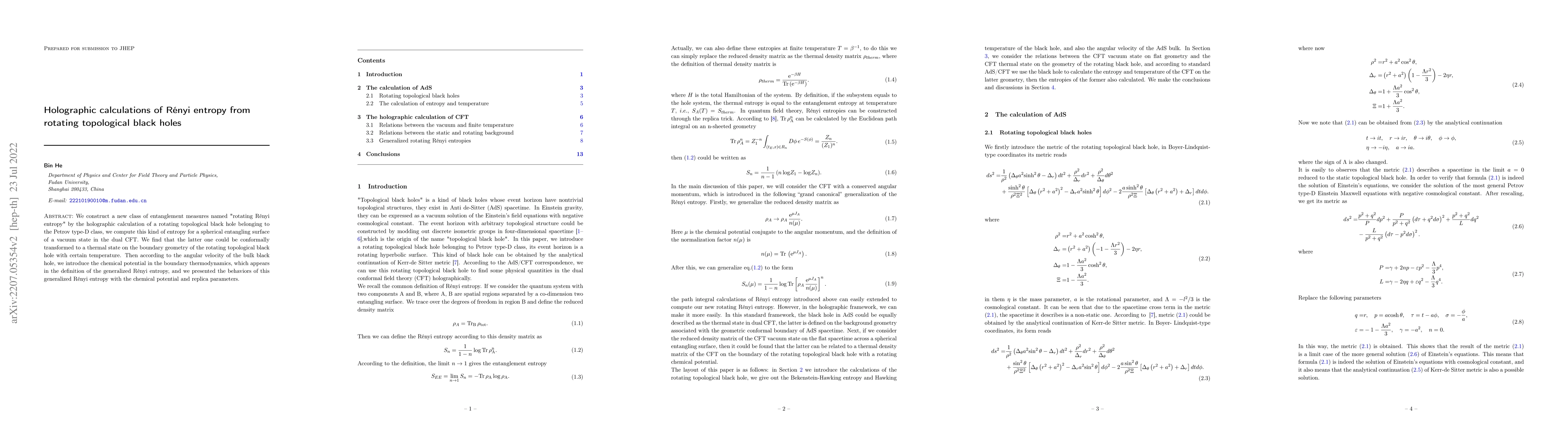This paper introduces a new class of entanglement measures called "rotating R\'enyi entropy" through holographic calculations of a rotating topological black hole. It computes this entropy for a spherical entangling surface in a vacuum state, showing its conformal transformation to a thermal state, and explores its behavior under chemical potential and replica parameters.