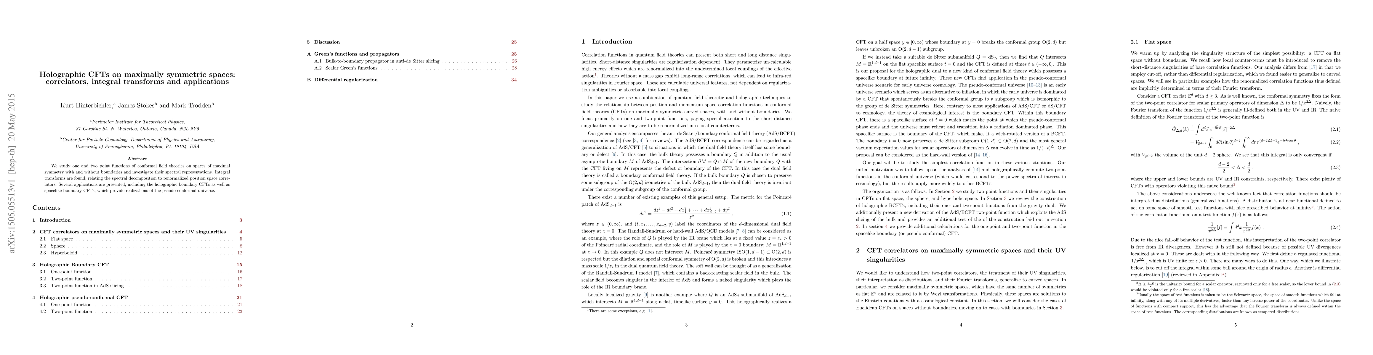 This paper investigates the one and two point functions of conformal field theories on maximally symmetric spaces, exploring their spectral representations and integral transforms. It presents applications to holographic and spacelike boundary conformal field theories, offering insights into the pseudo-conformal universe.