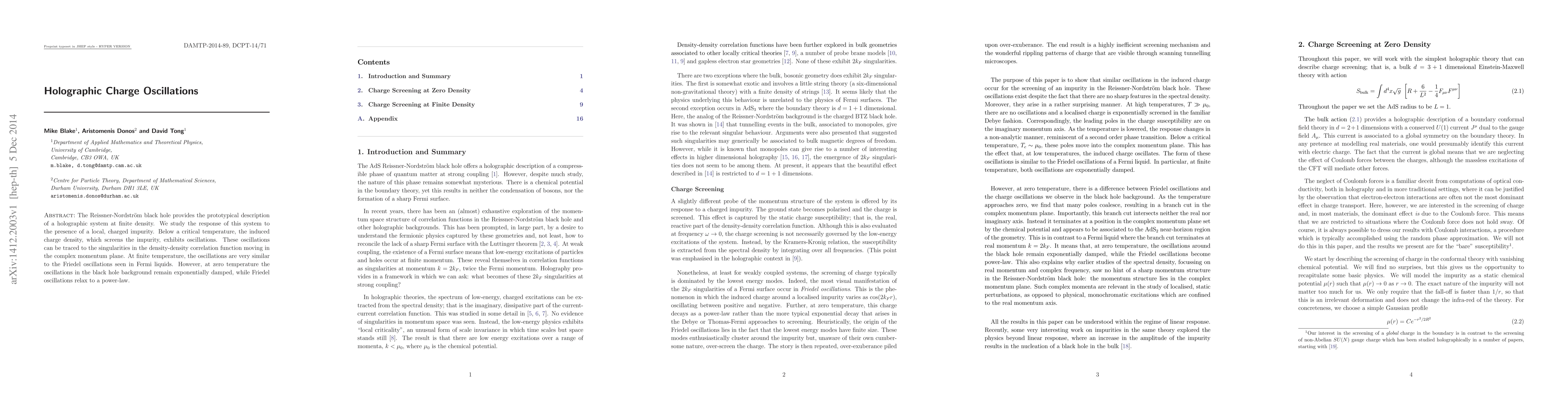 The Reissner-Nordstrom black hole provides the prototypical description of a holographic system at finite density. We study the response of this system to the presence of a local, charged impurity. Below a critical temperature, the induced charge density, which screens the impurity, exhibits oscillations. These oscillations can be traced to the singularities in the density-density correlation function moving in the complex momentum plane. At finite temperature, the oscillations are very similar to the Friedel oscillations seen in Fermi liquids. However, at zero temperature the oscillations in the black hole background remain exponentially damped, while Friedel oscillations relax to a power-law