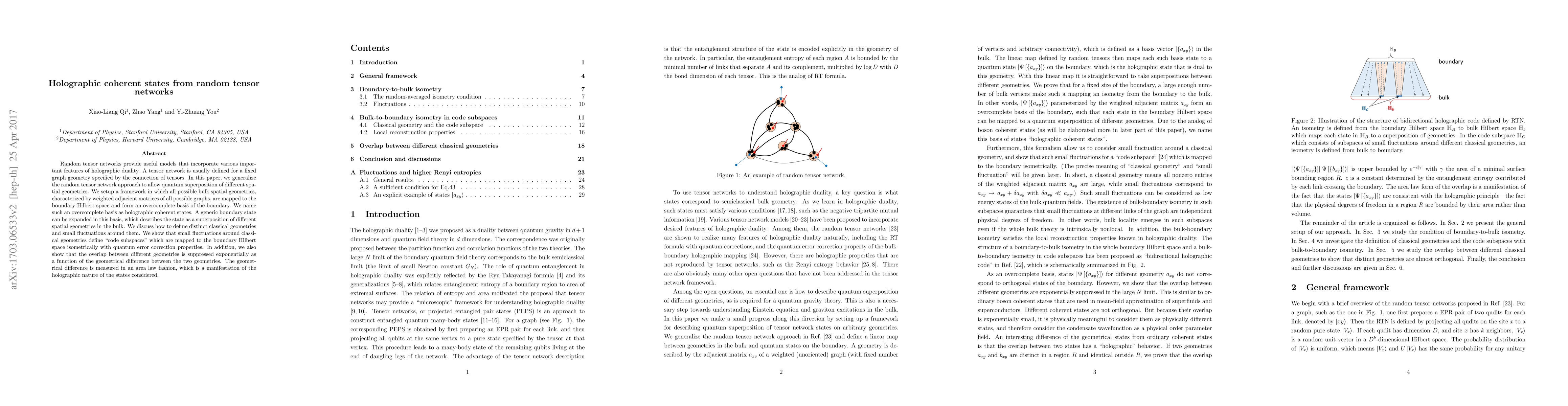 This paper generalizes random tensor networks to allow quantum superposition of different spatial geometries, creating an overcomplete basis termed holographic coherent states. These states describe boundary states as superpositions of various bulk geometries, with small fluctuations around classical geometries defining code subspaces with quantum error correction properties.