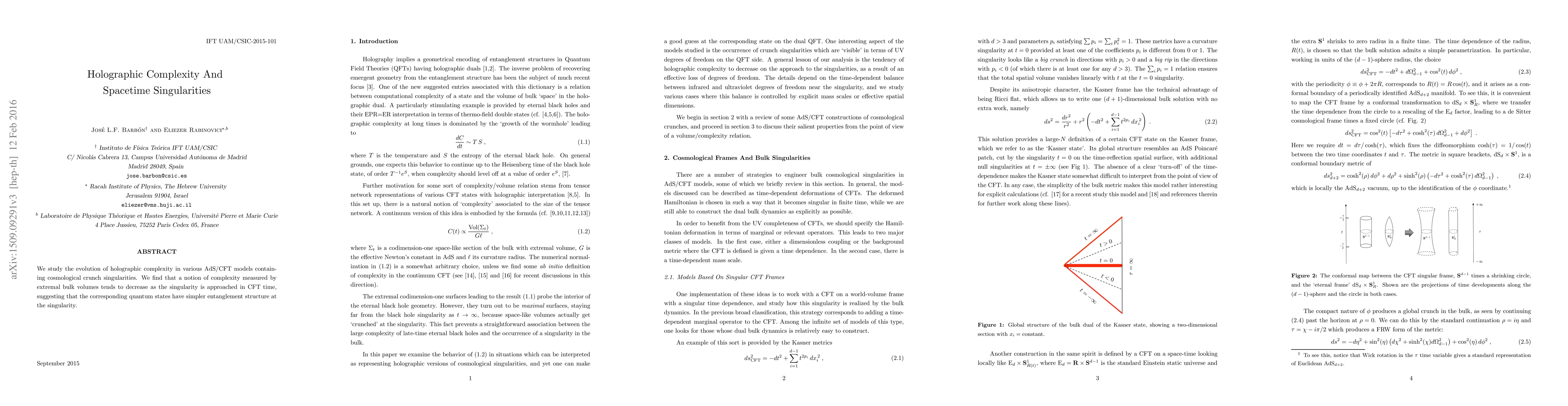 This paper investigates holographic complexity in AdS/CFT models with cosmological crunch singularities, revealing that complexity, quantified by extremal bulk volumes, diminishes as the singularity is approached, indicating simpler quantum state entanglement near the singularity.