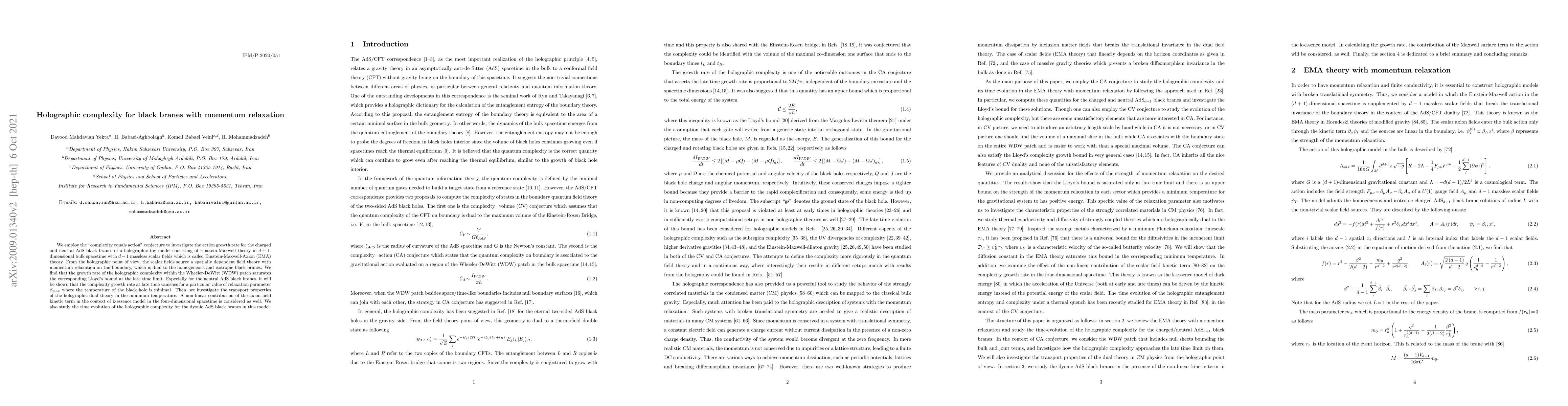 This paper explores the growth rate of holographic complexity in Einstein-Maxwell-Axion theory using the "complexity equals action" conjecture, finding that the complexity growth rate saturates Lloyd's bound for charged and neutral AdS black branes. Notably, neutral black branes exhibit zero complexity growth at late times when the relaxation parameter reaches a specific value, corresponding to minimal black hole temperature.