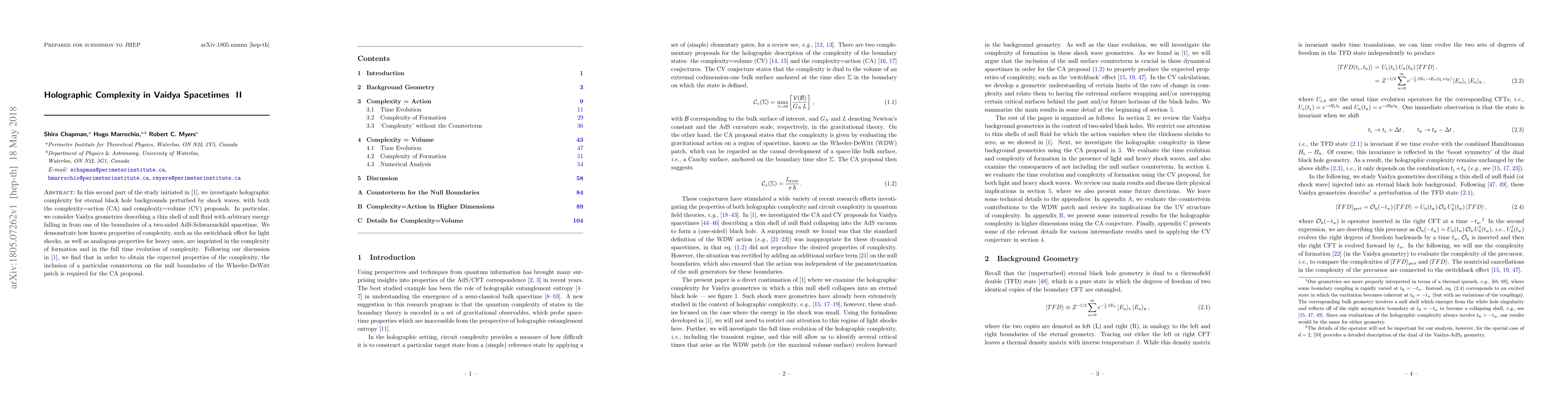 In this second part of the study initiated in arxiv:1804.07410, we investigate holographic complexity for eternal black hole backgrounds perturbed by shock waves, with both the complexity$=$action (CA) and complexity$=$volume (CV) proposals. In particular, we consider Vaidya geometries describing a thin shell of null fluid with arbitrary energy falling in from one of the boundaries of a two-sided AdS-Schwarzschild spacetime. We demonstrate how known properties of complexity, such as the switchback effect for light shocks, as well as analogous properties for heavy ones, are imprinted in the complexity of formation and in the full time evolution of complexity. Following our discussion in arxiv:1804.07410, we find that in order to obtain the expected properties of the complexity, the inclusion of a particular counterterm on the null boundaries of the Wheeler-DeWitt patch is required for the CA proposal.