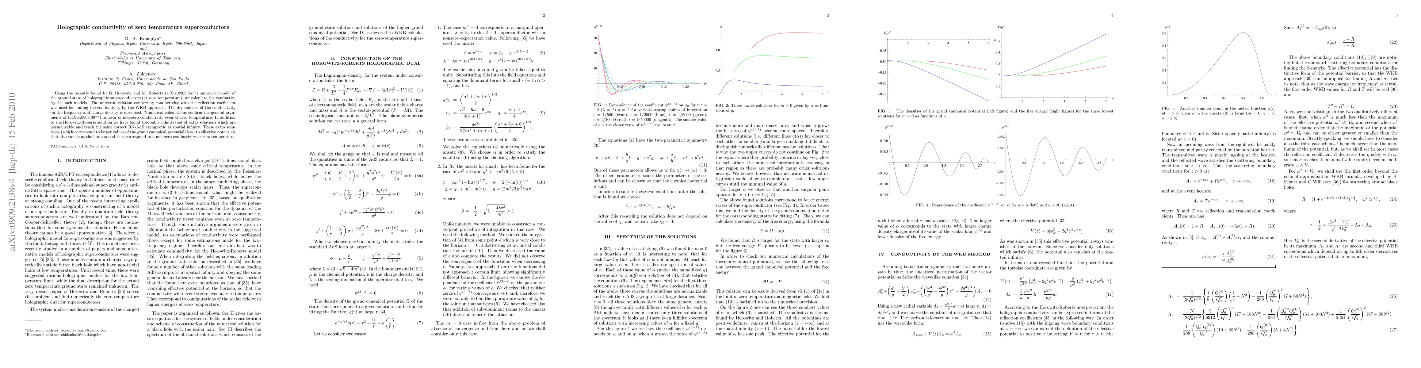 This paper investigates the holographic conductivity of zero temperature superconductors using a numerical model by Horowitz and Roberts. It finds non-zero conductivity at zero temperature via the WKB approach and identifies additional normalizable solutions leading to similar conductivity results.