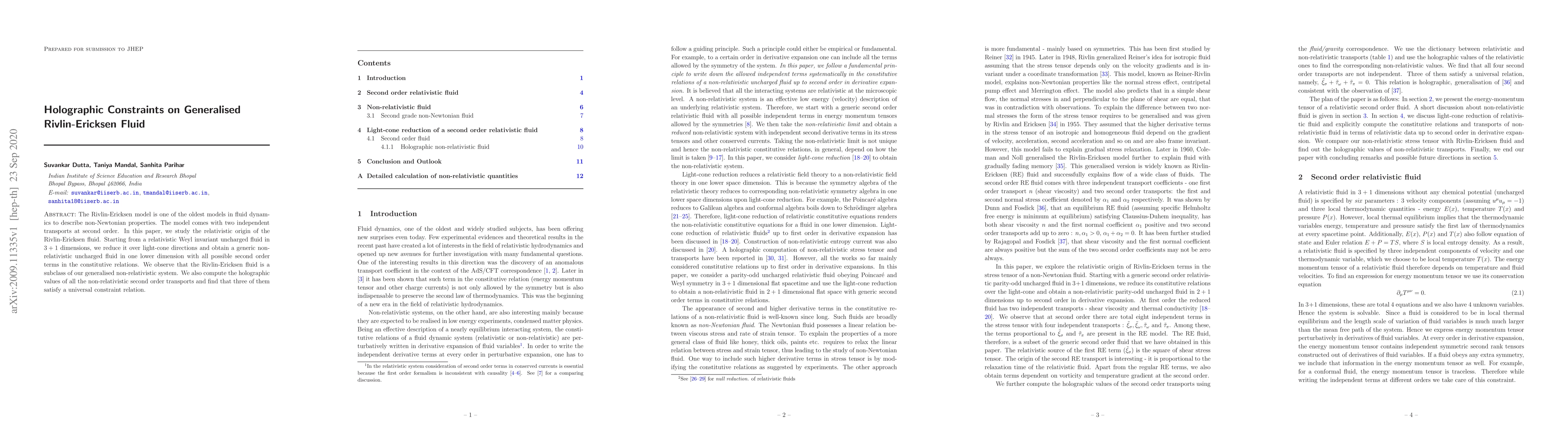 The Rivlin-Ericksen model is one of the oldest models in fluid dynamics to describe non-Newtonian properties. The model comes with two independent transports at second order. In this paper, we study the relativistic origin of the Rivlin-Ericksen fluid. Starting from a relativistic Weyl invariant uncharged fluid in $3+1$ dimensions, we reduce it over light-cone directions and obtain a generic non-relativistic uncharged fluid in one lower dimension with all possible second order terms in the constitutive relations. We observe that the Rivlin-Ericksen fluid is a subclass of our generalised non-relativistic system. We also compute the holographic values of all the non-relativistic second order transports and find that three of them satisfy a universal constraint relation.
