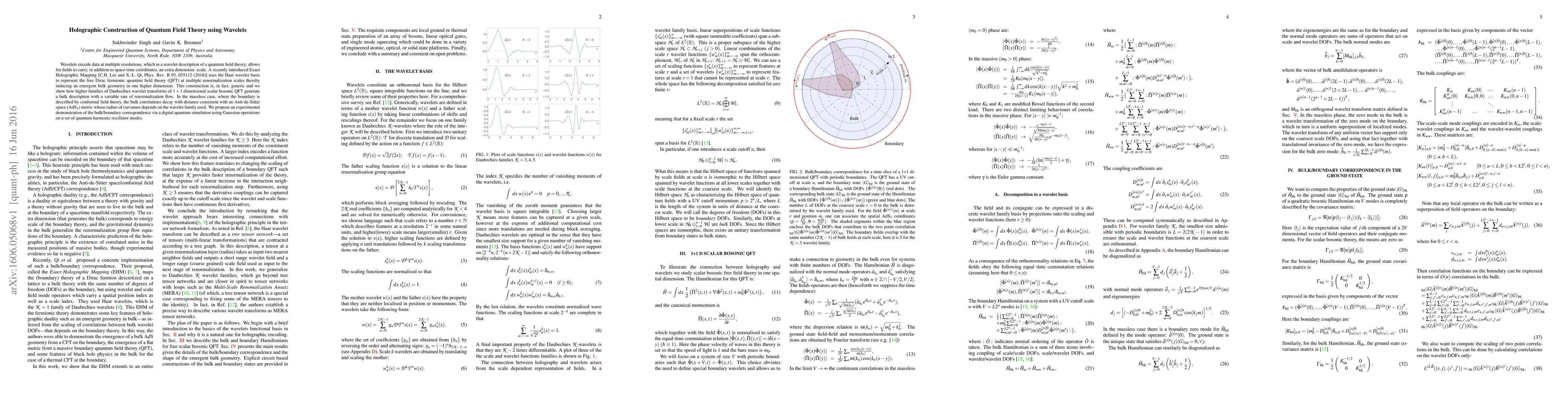 This paper explores the holographic construction of quantum field theories using wavelets, demonstrating how wavelets can encode data at multiple resolutions to generate a bulk geometry in one higher dimension. The study proposes a digital quantum simulation to experimentally verify the bulk/boundary correspondence via Gaussian operations on quantum harmonic oscillator modes.