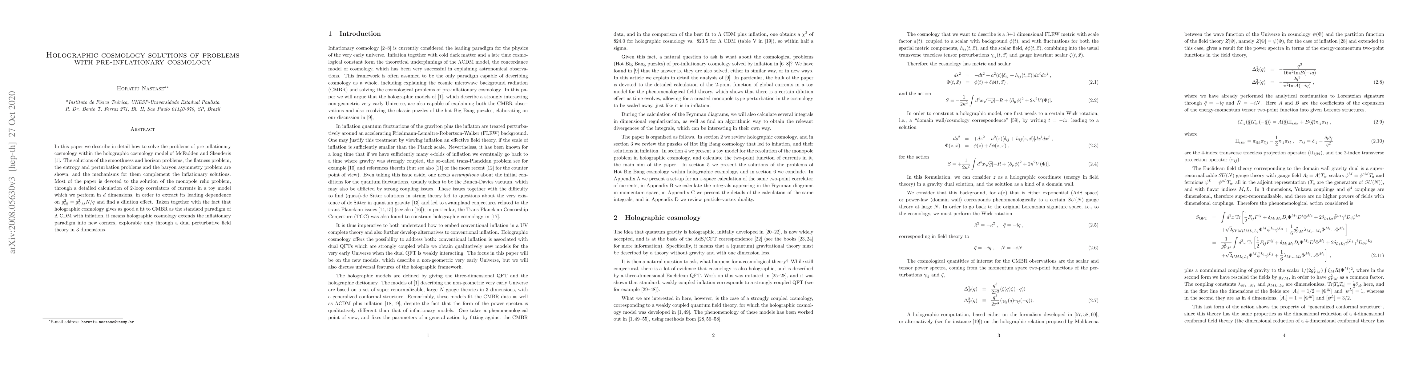 This paper addresses pre-inflationary cosmology issues using the holographic cosmology model of McFadden and Skenderis, solving problems like smoothness, horizon, flatness, and baryon asymmetry. It particularly focuses on the monopole relic problem through detailed 2-loop correlator calculations, demonstrating a dilution effect and extending the inflationary paradigm.