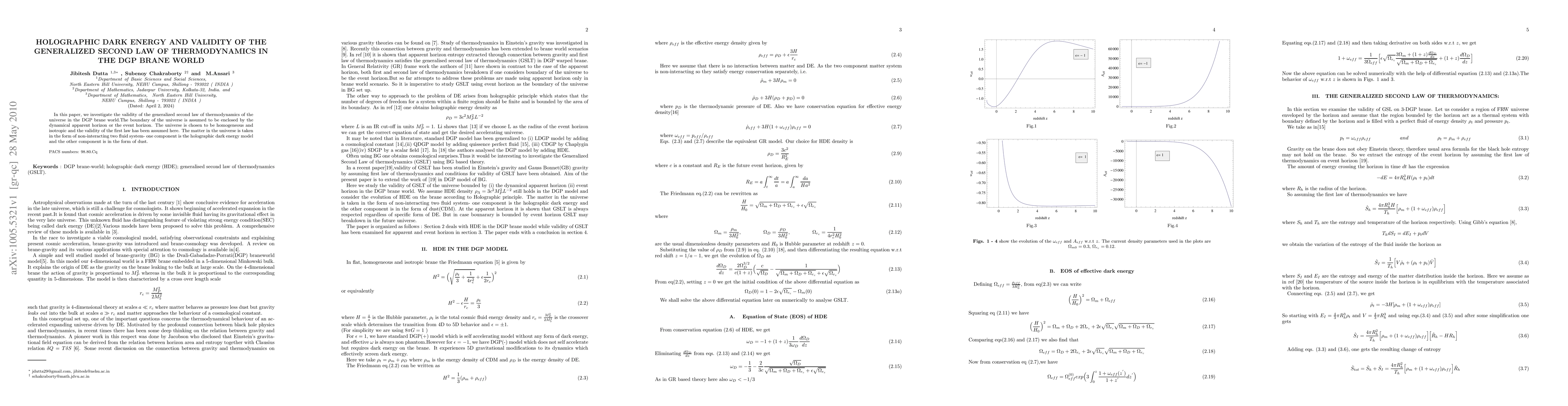 This paper explores the generalized second law of thermodynamics in the DGP brane world model, considering a universe with a dynamical apparent horizon boundary. It examines the interaction between holographic dark energy and dust matter in a homogeneous and isotropic universe.